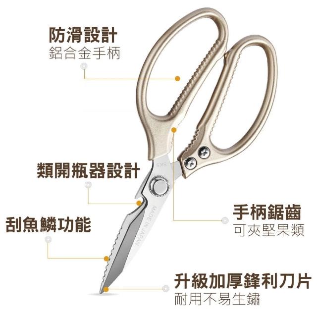 新錸家居第五代★日本SK5鋁合金廚房料理剪刀(強力不鏽鋼剪雞骨刀 食物材剪 核桃烤肉剪 刨魚鱗 開瓶器)