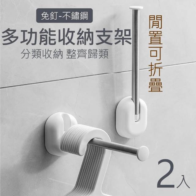 時光良品2入高質感★免釘不鏽鋼吊掛衣架收納架(洗衣機壁掛折疊無痕免打孔 捲筒衛生紙架毛巾架夾子冰箱)