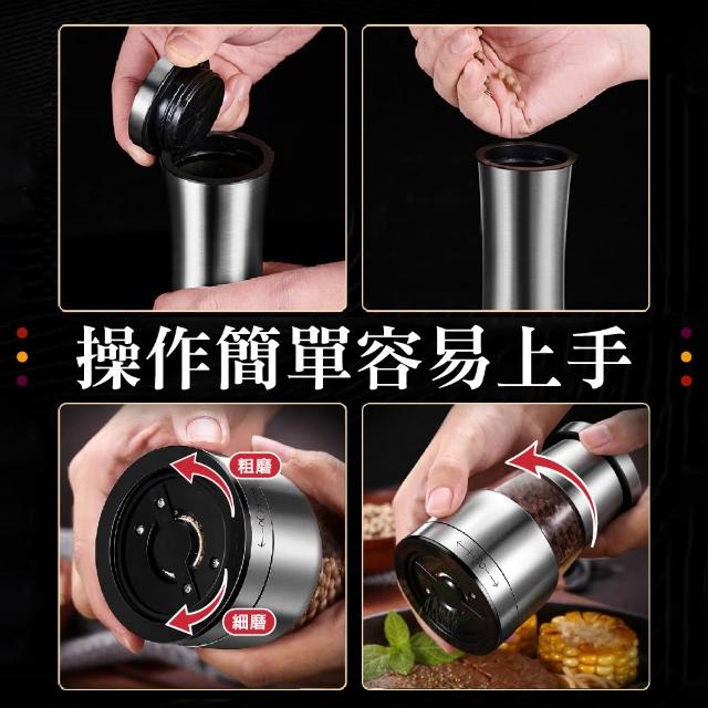 新錸家居德國SSGP★短款304不鏽鋼 海鹽胡椒粒研磨器 芝麻鹽香料調味罐瓶(粗細可調 陶瓷機芯 透明可視)