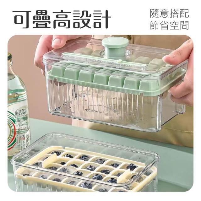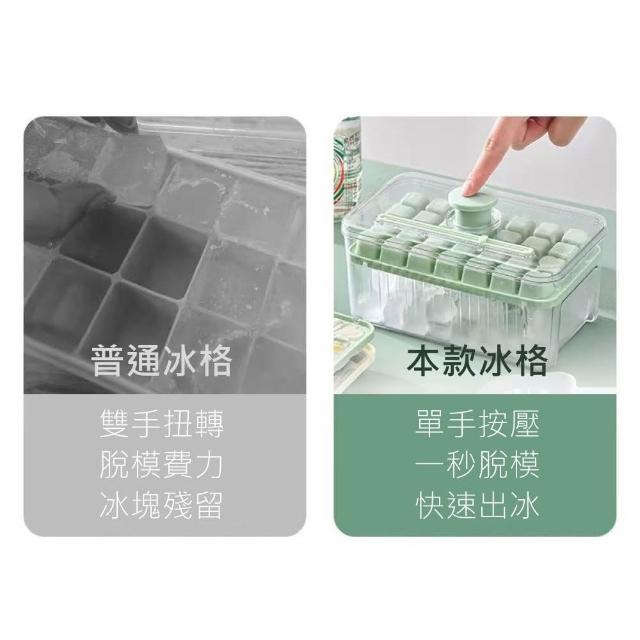 新錸家居雙層56格一秒脫模按壓製冰盒 加大容量一鍵秒脫冰食品級冰塊盒(送冰鏟 副食品盒 儲冰格器模具)