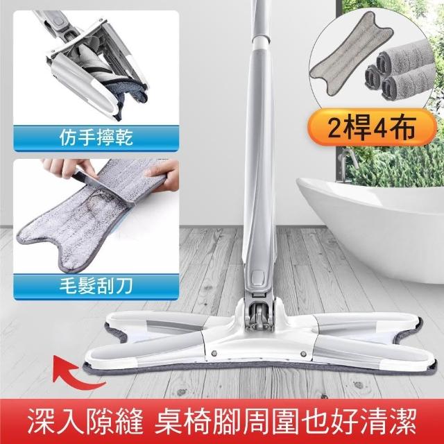新錸家居2桿4布-X型免沾手☆加大平板拖把 360°旋轉仿手擰乾(送刮刀毛刷 蝴蝶旋轉拖把免手洗乾溼兩用)