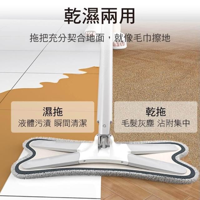 新錸家居2桿4布-X型免沾手☆加大平板拖把 360°旋轉仿手擰乾(送刮刀毛刷 蝴蝶旋轉拖把免手洗乾溼兩用)