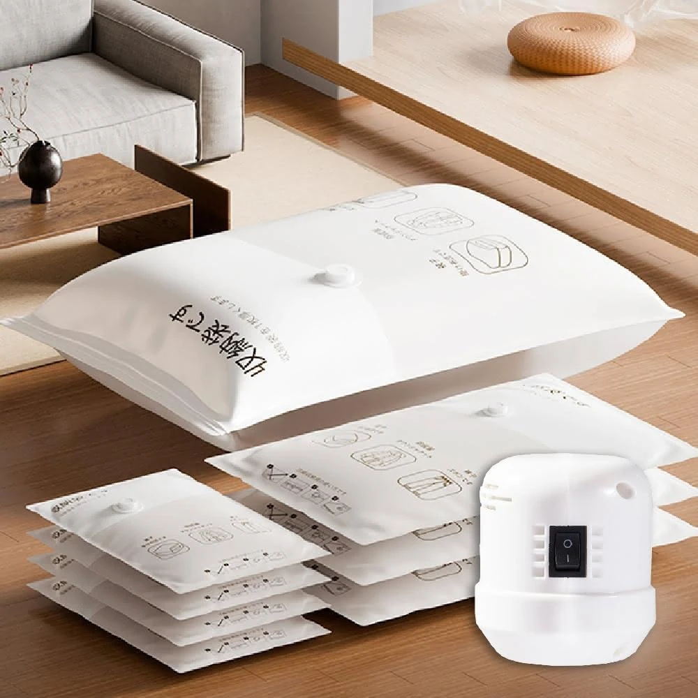 新錸家居13件超值★加厚加大真空壓縮袋電泵抽真空機(旅行換季衣物棉被收納壓縮袋 可重複使用密封防塵)