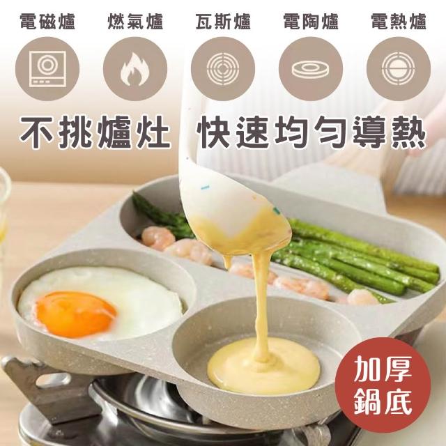 鼎匠升級版★三合一早餐煎蛋鍋雞蛋漢堡鍋牛排麥飯石不沾平底鍋(米白2圓孔+1長方型煎荷包蛋模具電磁爐)