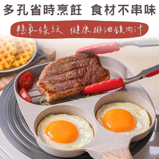 鼎匠升級版★三合一早餐煎蛋鍋雞蛋漢堡鍋牛排麥飯石不沾平底鍋(米白2圓孔+1長方型煎荷包蛋模具電磁爐)