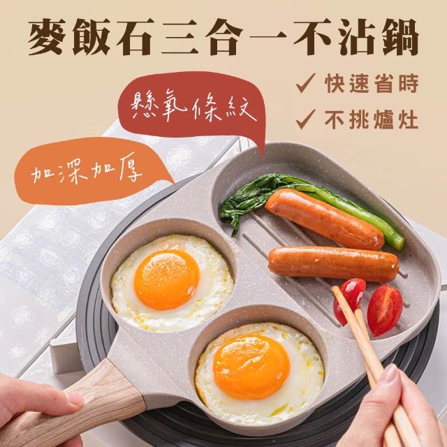 鼎匠升級版★三合一早餐煎蛋鍋雞蛋漢堡鍋牛排麥飯石不沾平底鍋(米白2圓孔+1長方型煎荷包蛋模具電磁爐)