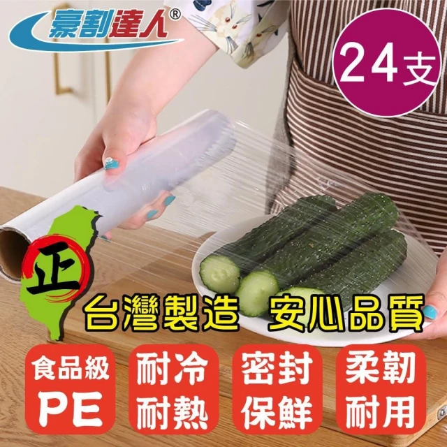 豪割達人台灣製 無毒PE保鮮膜x24支-30cmX200尺/ 22cmX100尺任選(3支一包補充包 同妙潔工廠生產)
