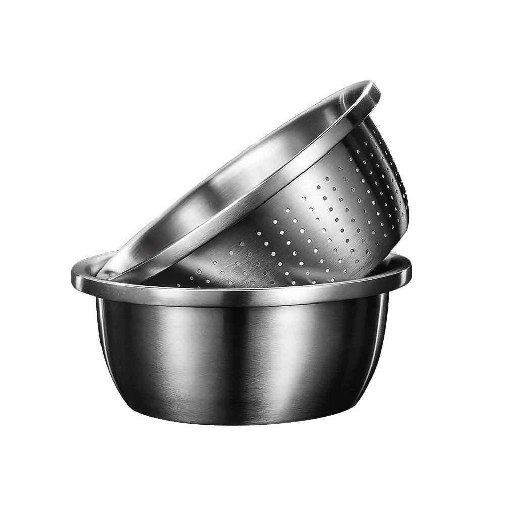 新錸家居24/28/30cm星閃304不鏽鋼加密孔瀝水籃/備料理盆/湯鍋(多功能洗菜盆調料碗洗米器洗滌籃蒸煮鍋)