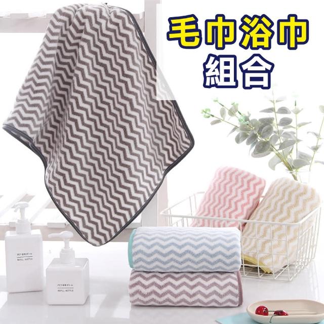 新錸家居2入浴毛巾組-日式超柔吸水親膚微絲加厚大浴巾/毛巾(水波紋划算2入組-浴巾1+毛巾1)