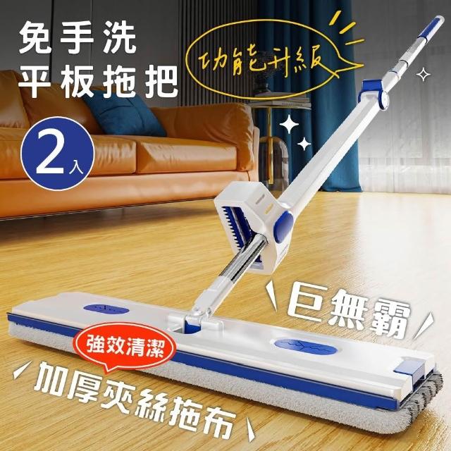 新錸家居2組新型45cm超大免手洗平板拖把 加厚夾絲纖維拖布 4段脫水 刮水刀魔術掃把 乾濕兩用旋轉拖把