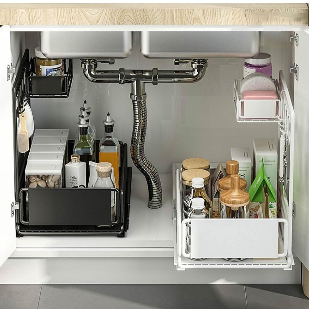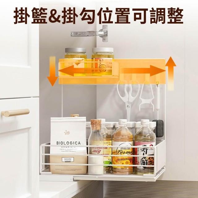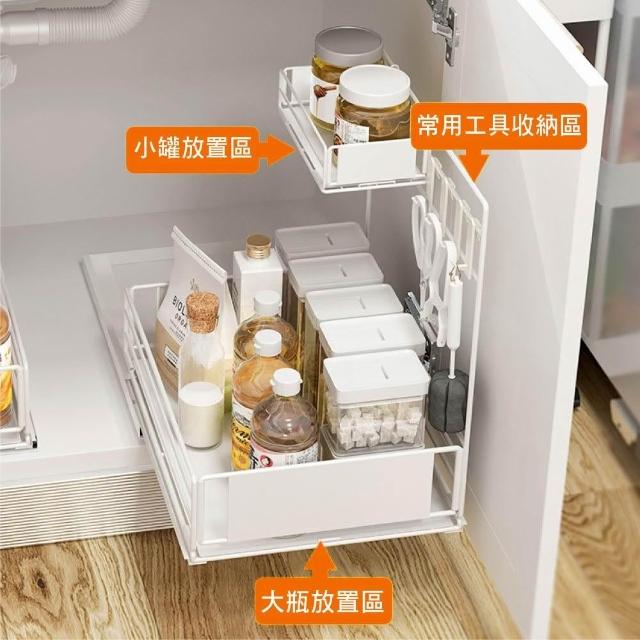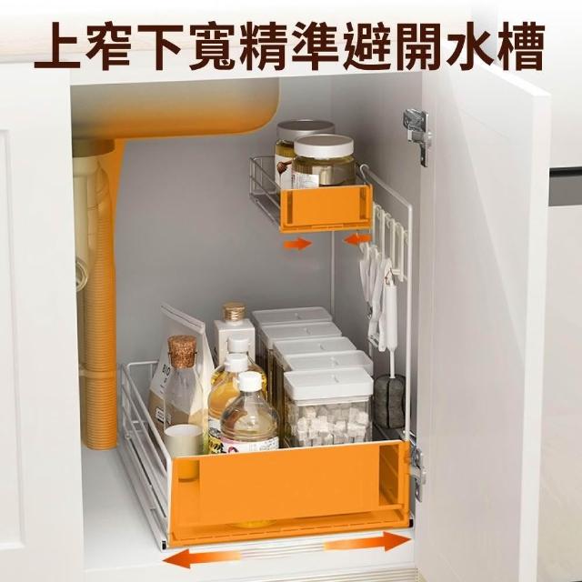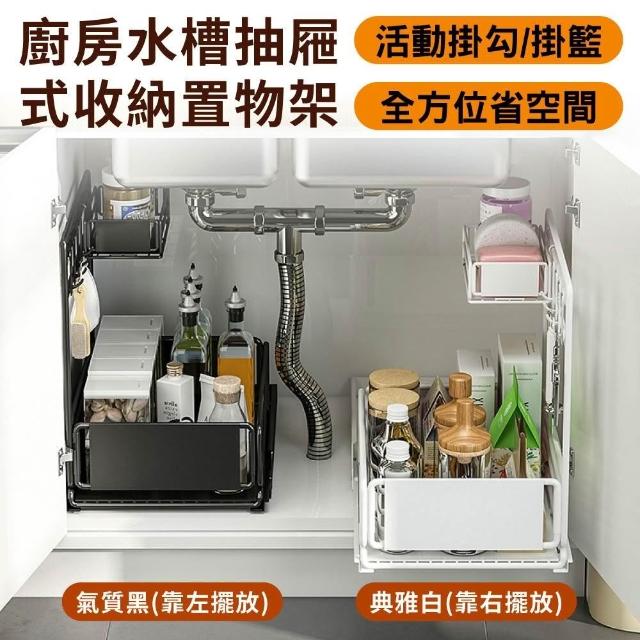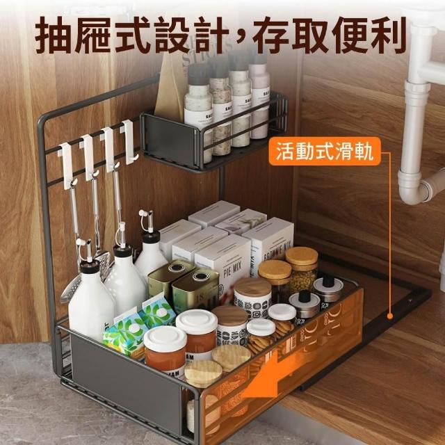 新錸家居側拉抽屜式廚房下水槽收納架(雙層加大水槽下置物/加高護欄檯面調味料架/不鏽鋼浴室雙層掛架)