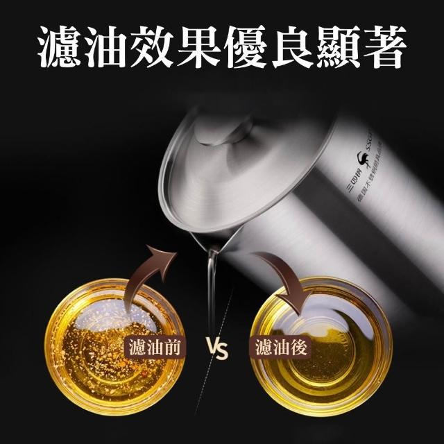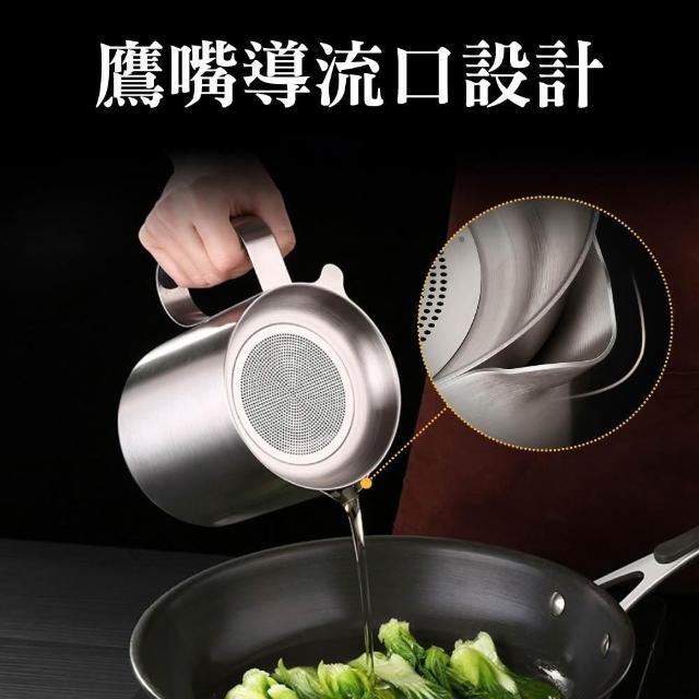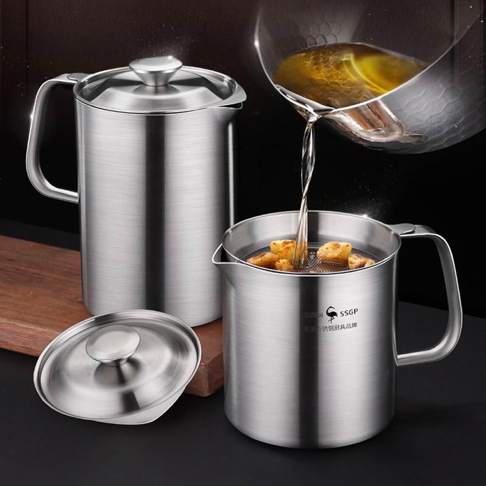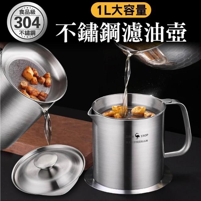 新錸家居1L大容量濾油網壺304不鏽鋼德國SSGP法蘭克福1000ml(蓋子除渣油瓶儲油罐炸豬油桶隔油湯鍋水壺)