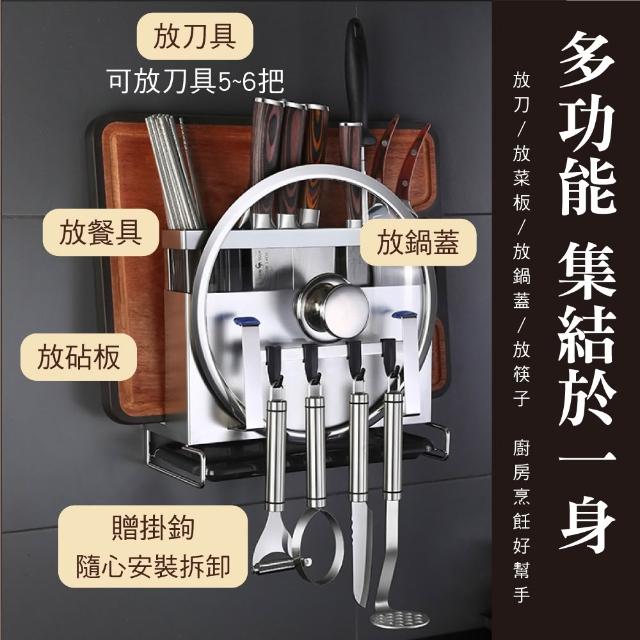 新錸家居德國SSGP升級款304不鏽鋼刀具菜刀筷子桶鍋蓋砧板一體收納架(免釘/打孔、壁掛式/放檯面置物架)