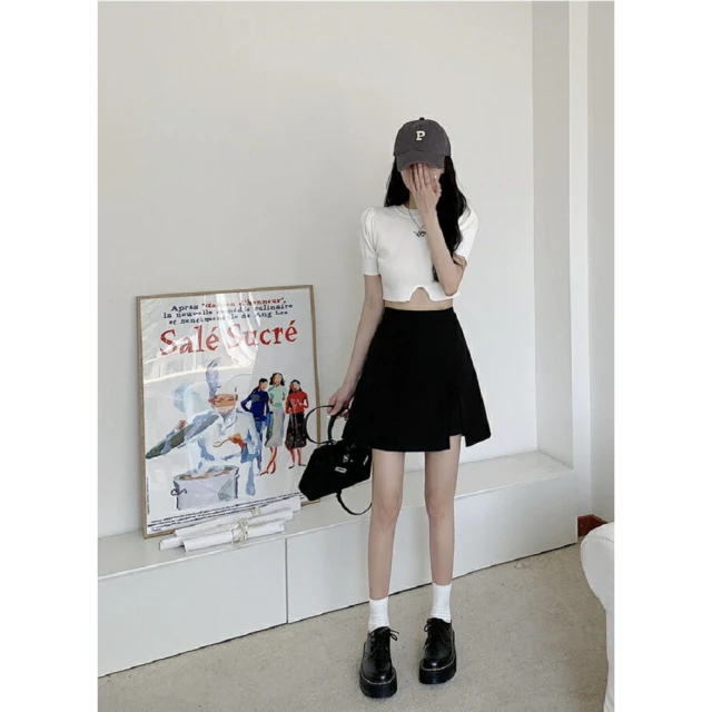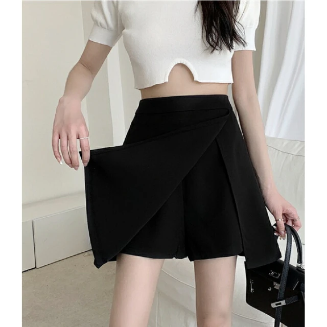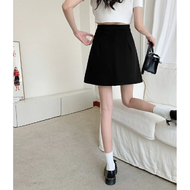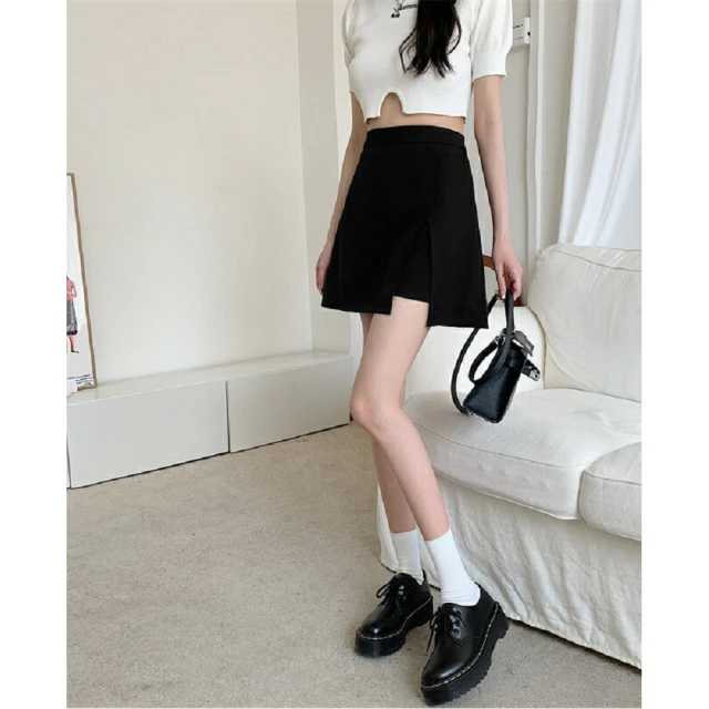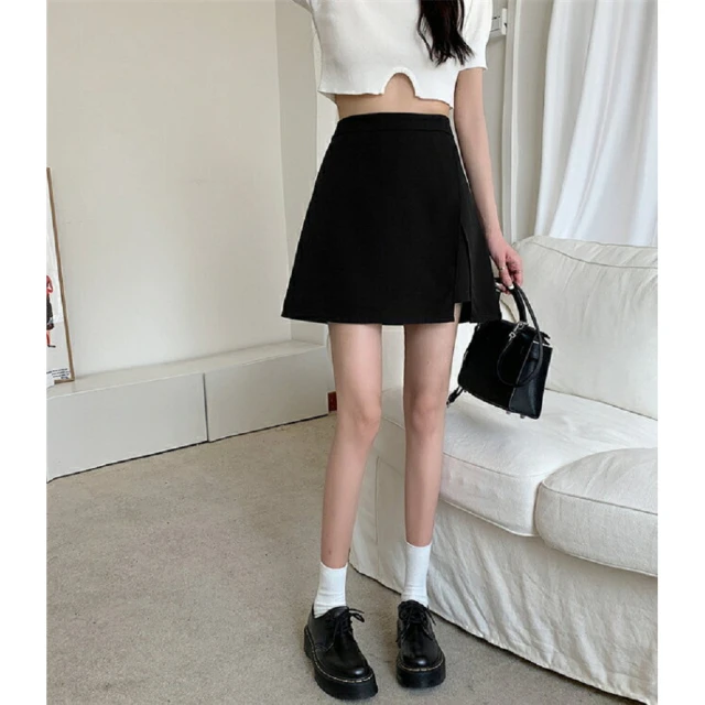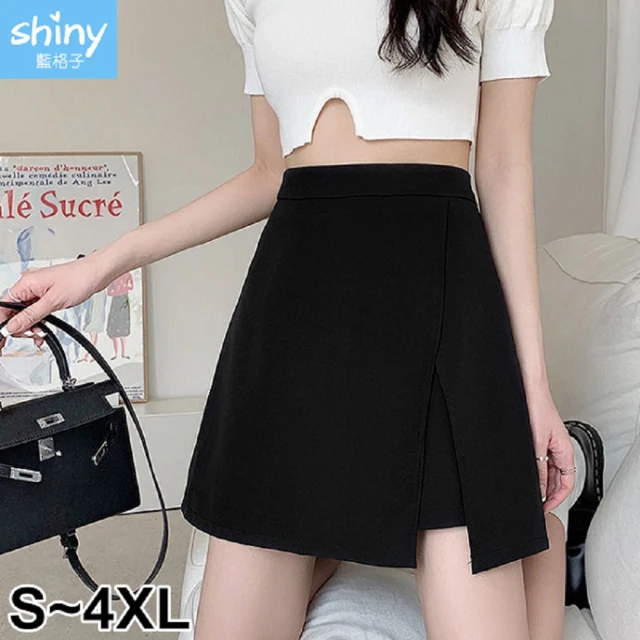 Shiny 藍格子開叉高腰顯瘦包臀防走光褲裙 V3568(女裝)
