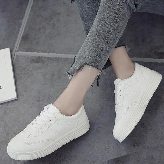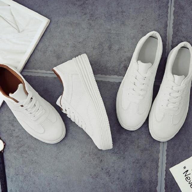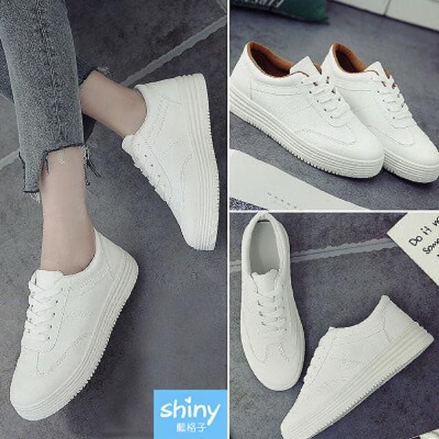 Shiny 藍格子韓版白色帆布厚底板鞋平底休閒布鞋 V8116(女鞋)