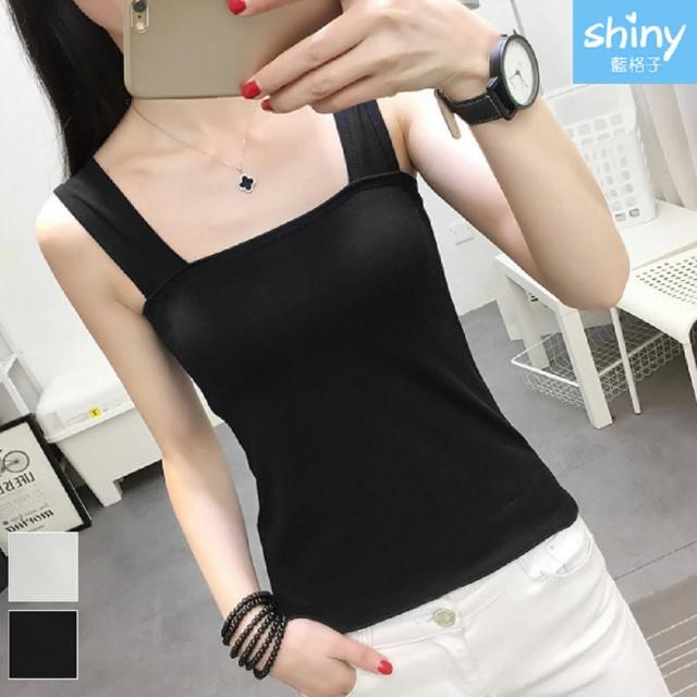Shiny 藍格子吊帶外穿內搭打底無袖背心上衣 V3593(女裝)