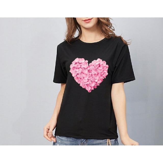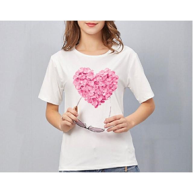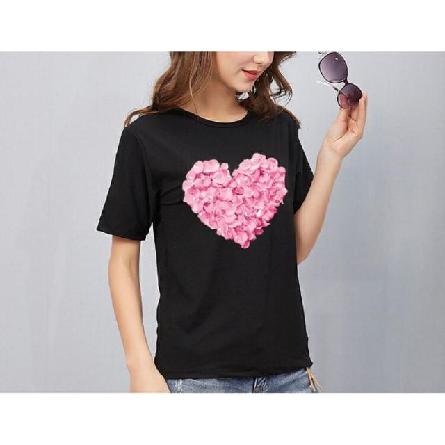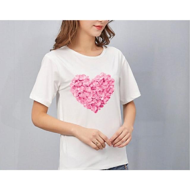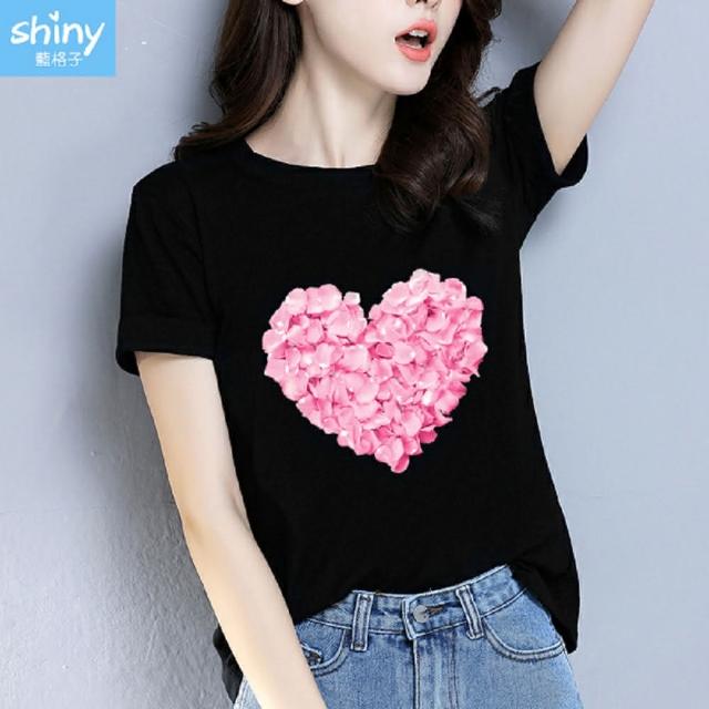 Shiny 藍格子愛心圓領短袖T恤上衣 V3130(女裝)