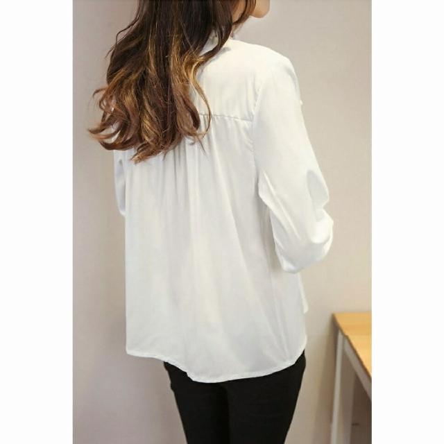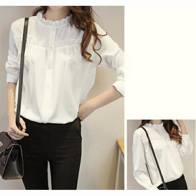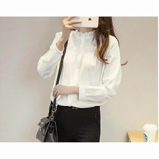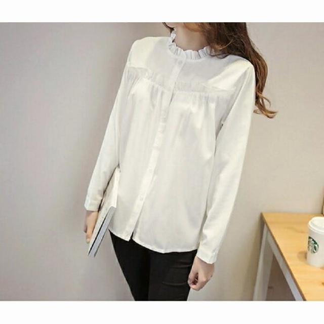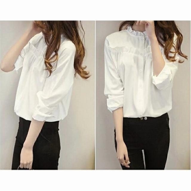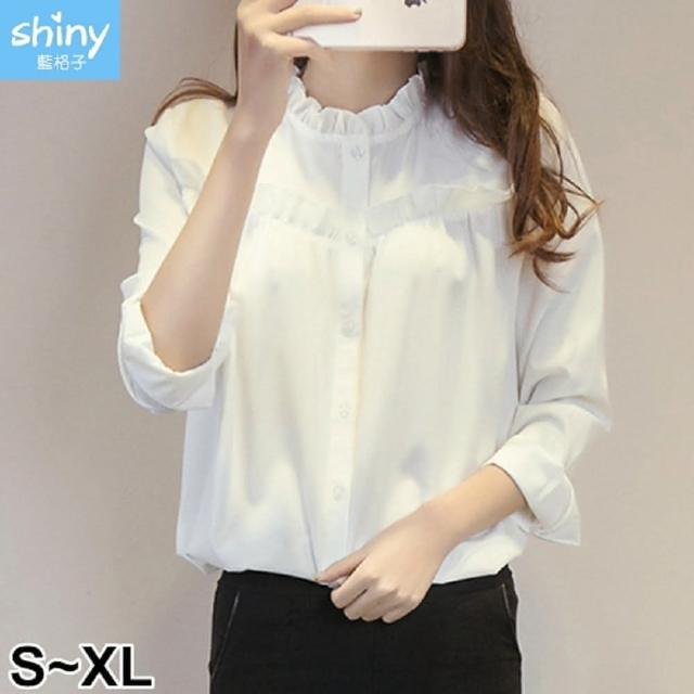 Shiny 藍格子木耳邊立領長袖襯衫上衣 V2545(女裝)