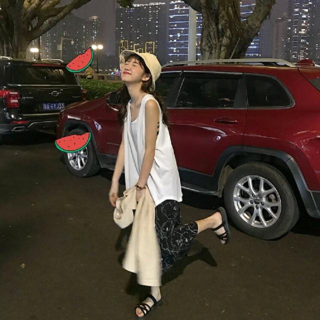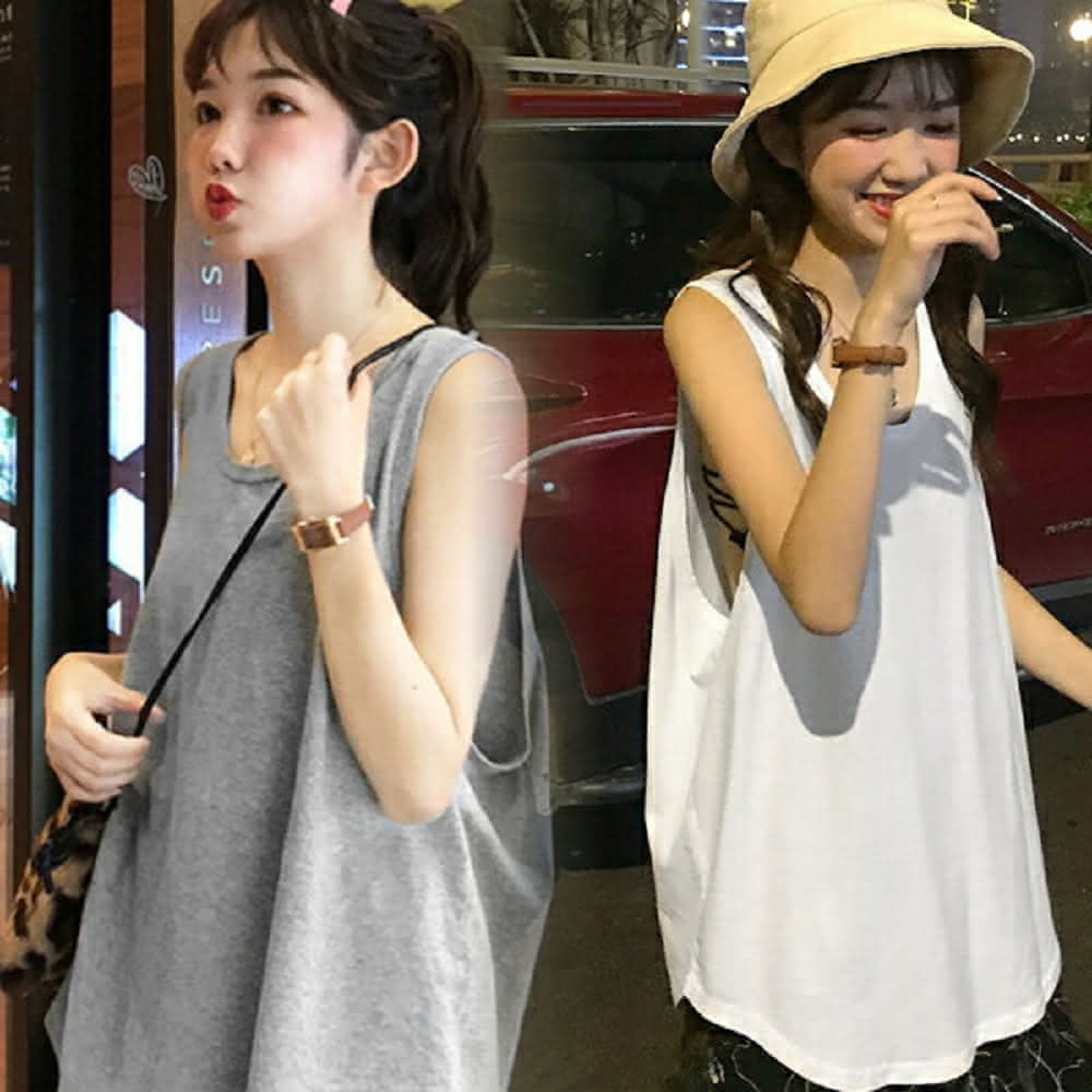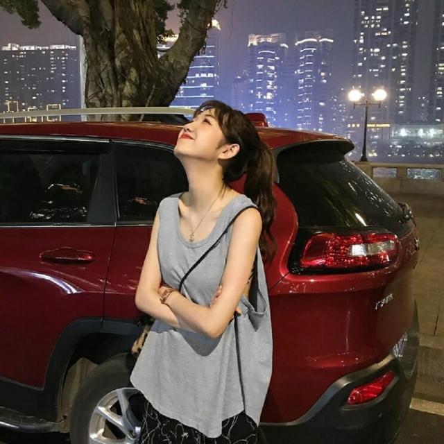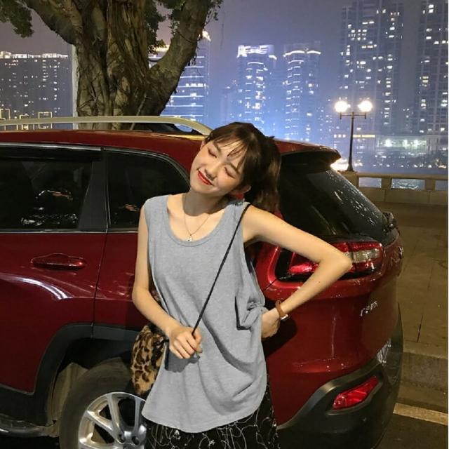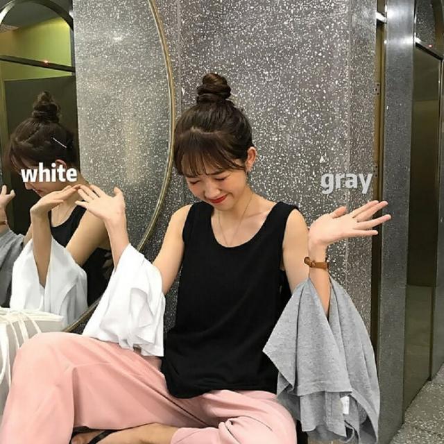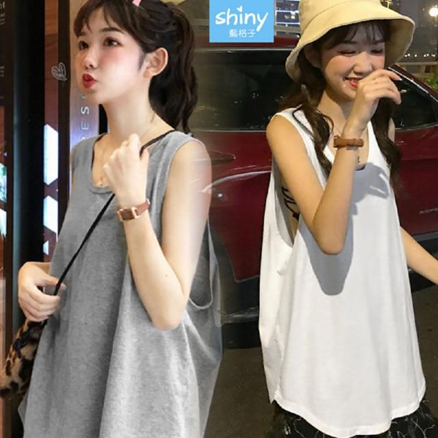 Shiny 藍格子無印純色寬袖口U領背心 V3793(女裝)