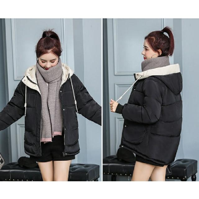 Shiny 藍格子冬季寬鬆加厚短款羽絨棉襖外套 V9215(女裝 保暖 連帽 風衣)