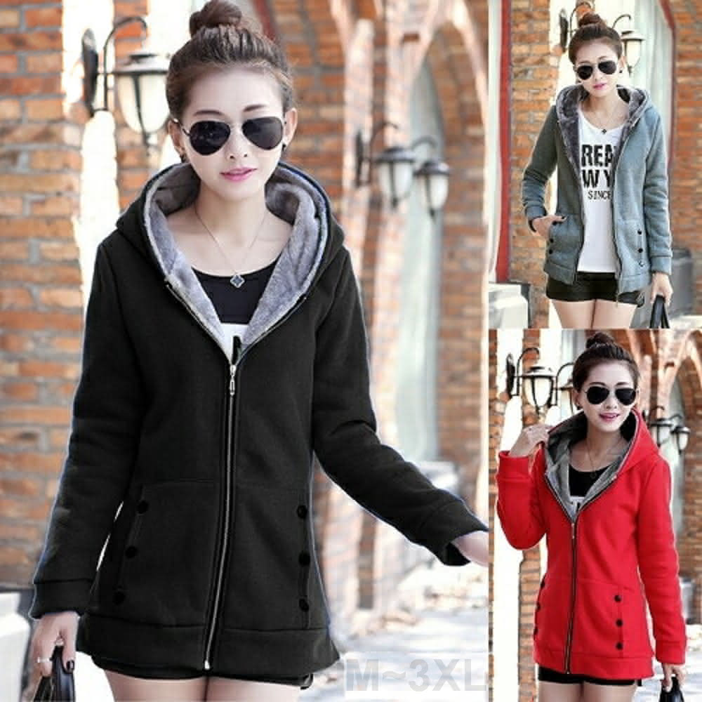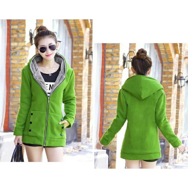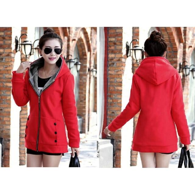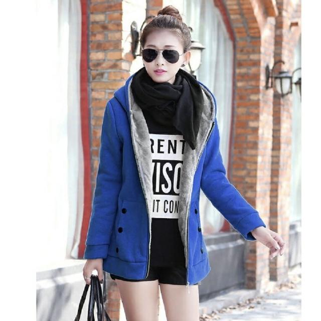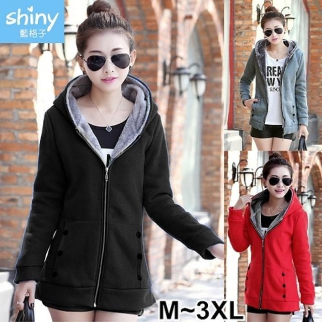 Shiny 藍格子純色修身保暖連帽絨毛外套 V2233(女裝)
