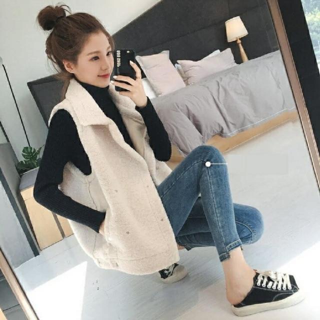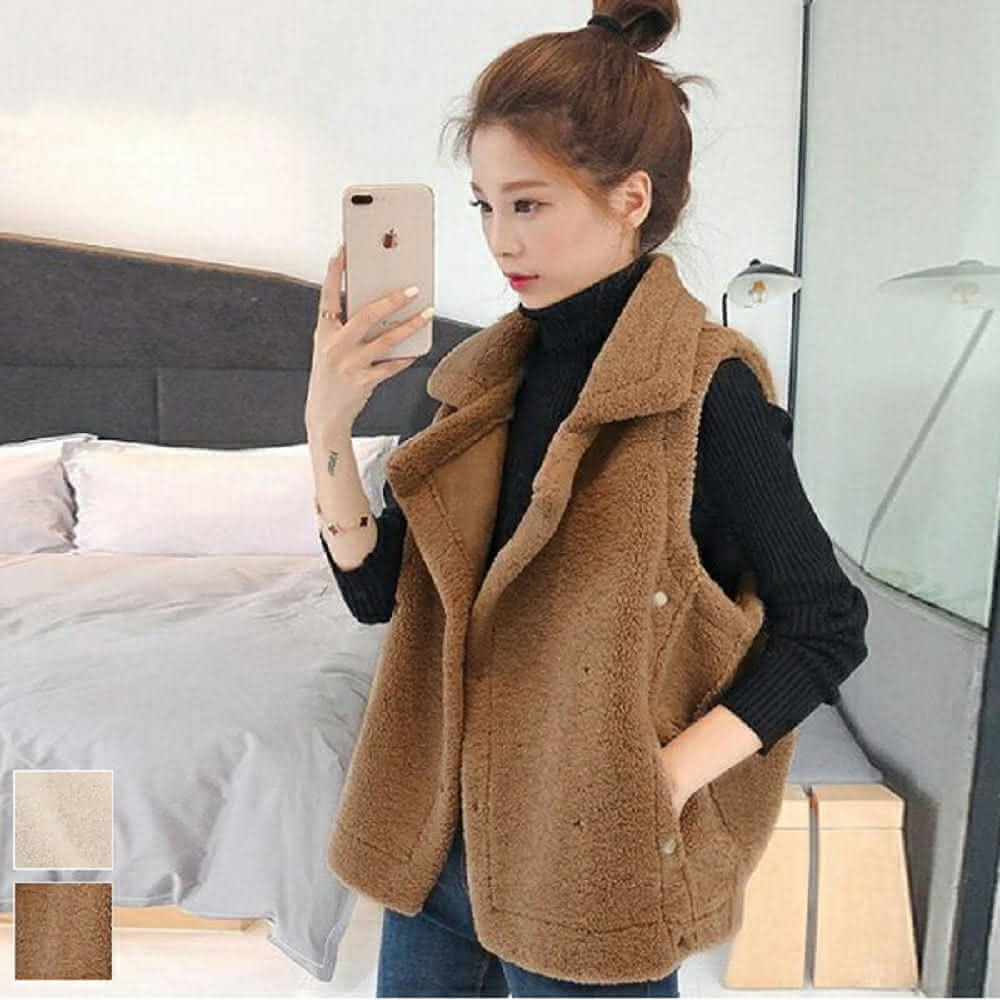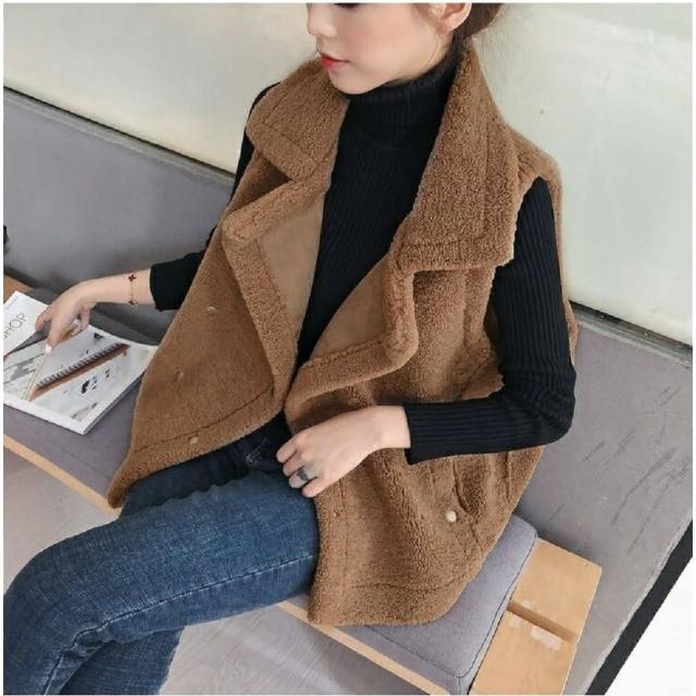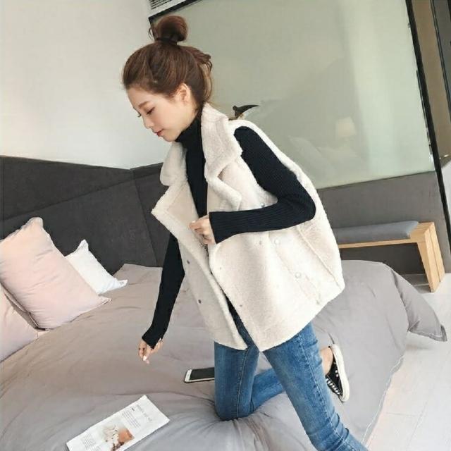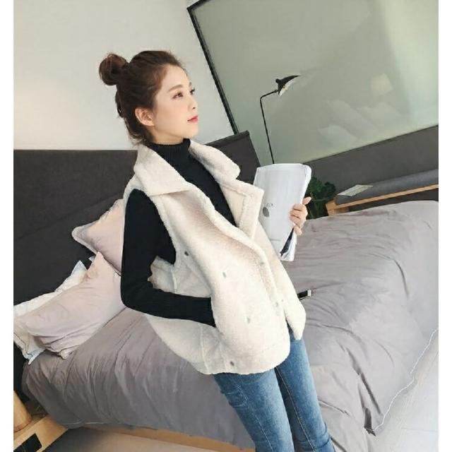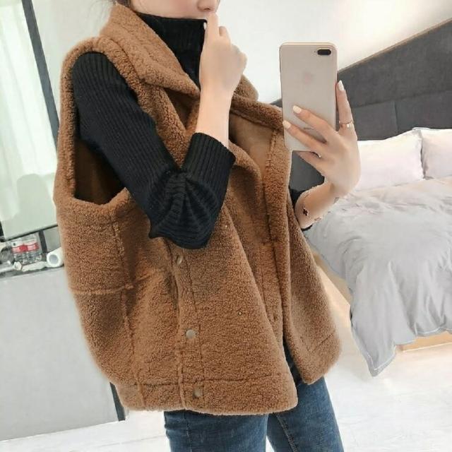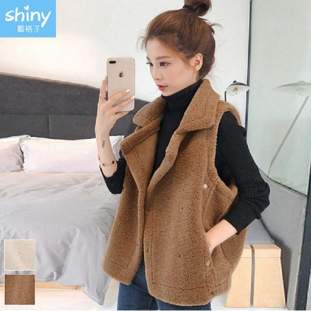 Shiny 藍格子羊羔毛雙排釦馬甲背心外套 V3477(女裝)