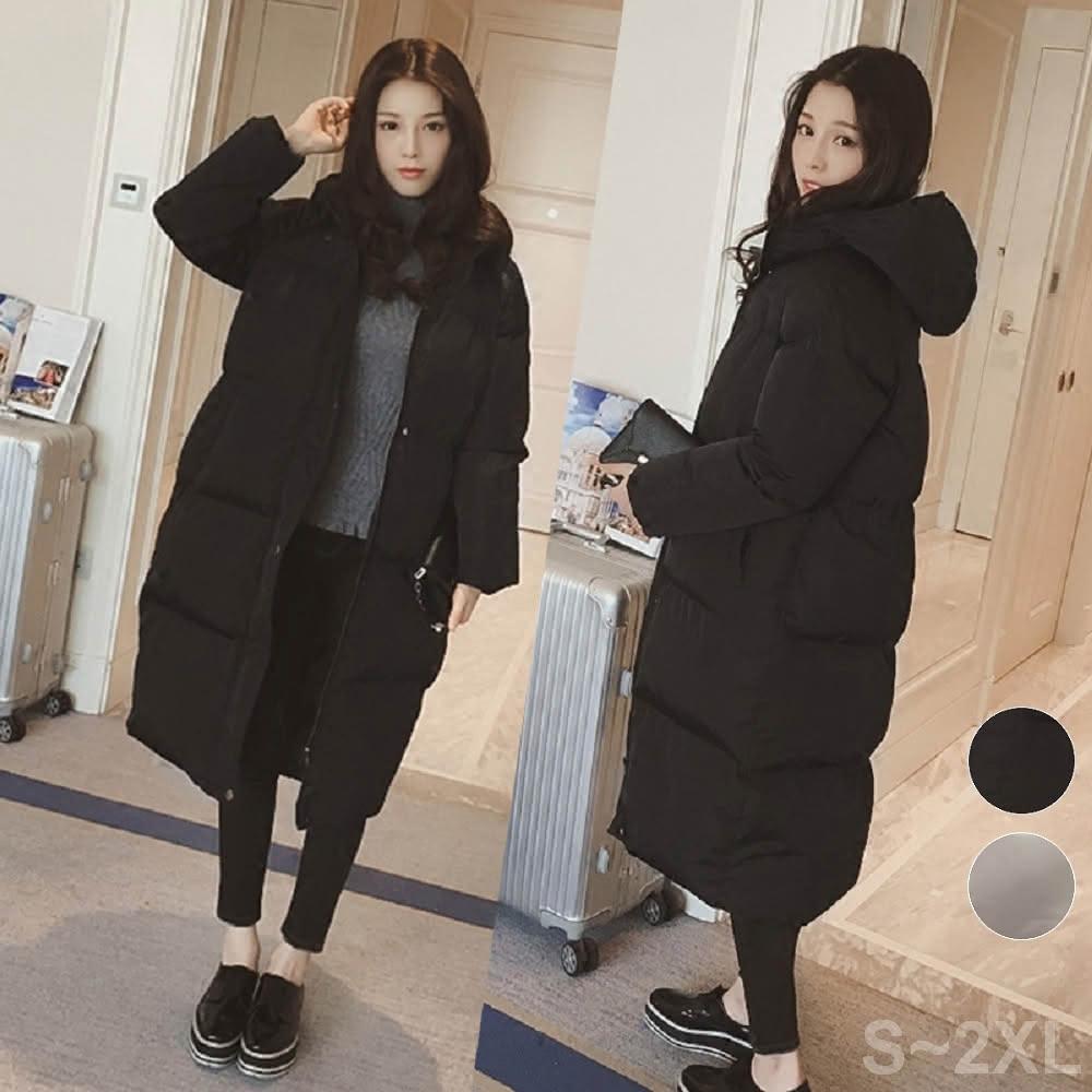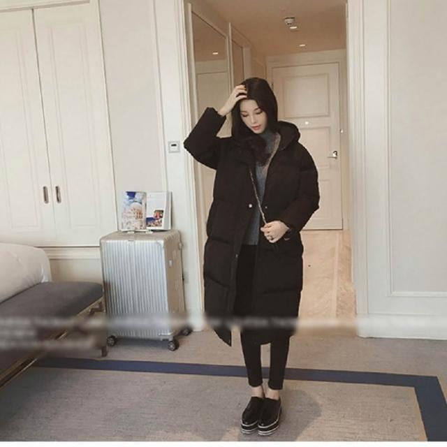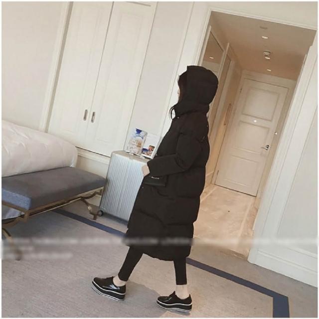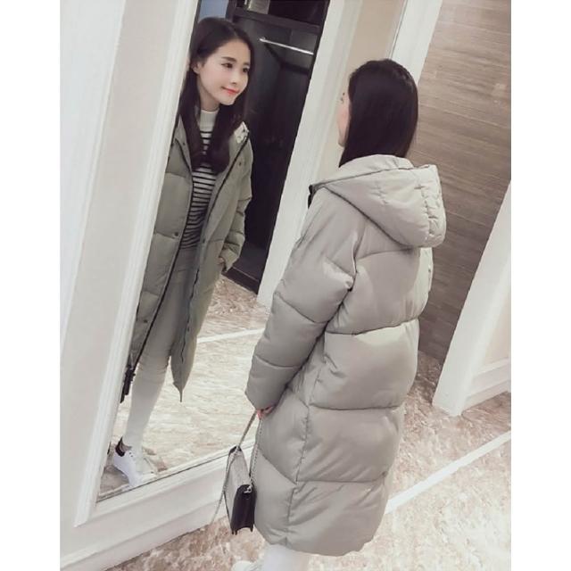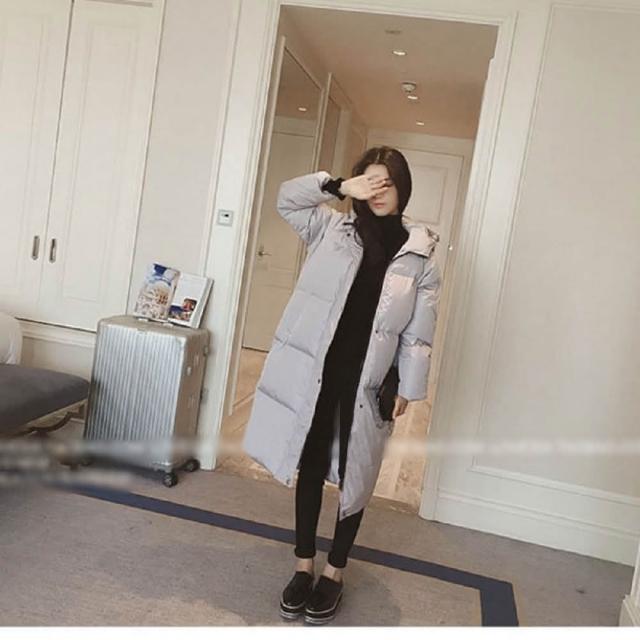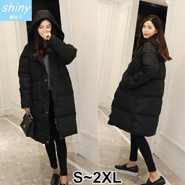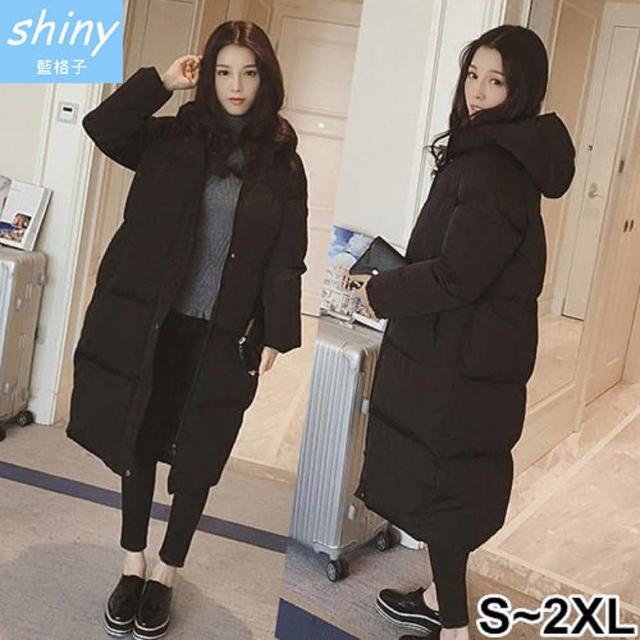 Shiny 藍格子冬季加厚保暖鋪棉棉襖中長款外套 V9630(女裝 風衣 連帽 )