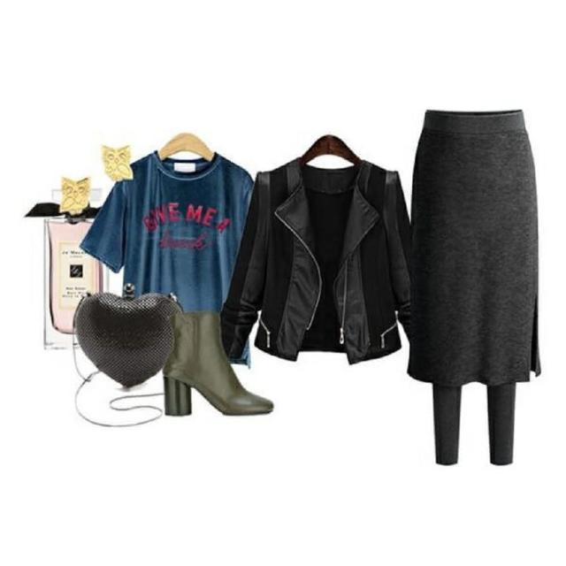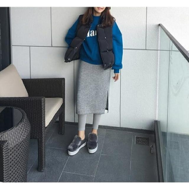 Shiny 藍格子素色腰鬆緊假兩件褲裙 V3610(女褲 長褲 內搭褲)