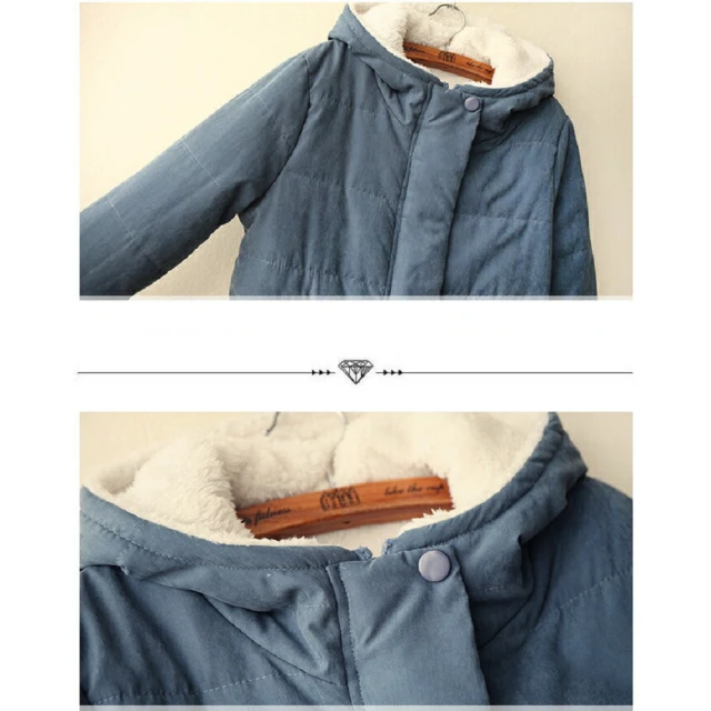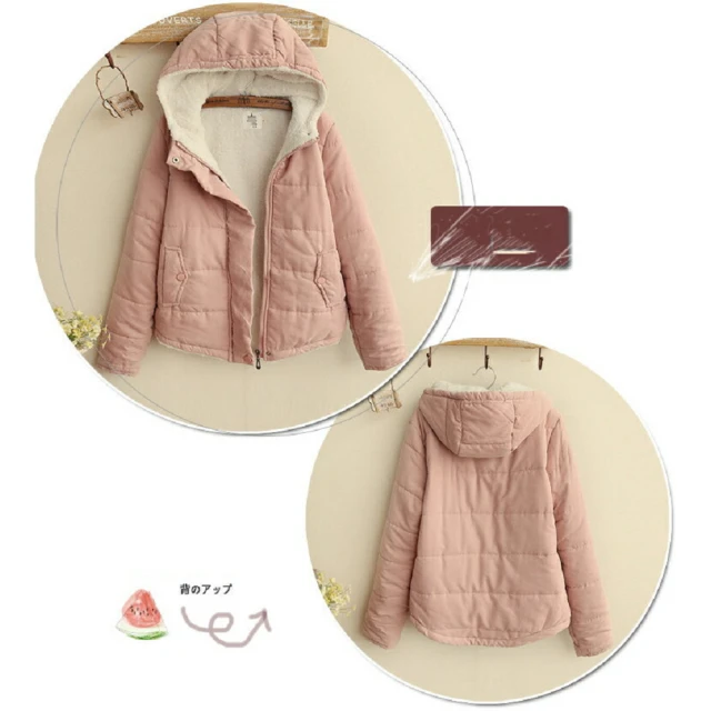 Shiny 藍格子秋冬保暖輕薄羊羔絨連帽防風短款外套 V9383(女裝 鋪棉 風衣 夾克)