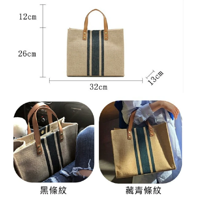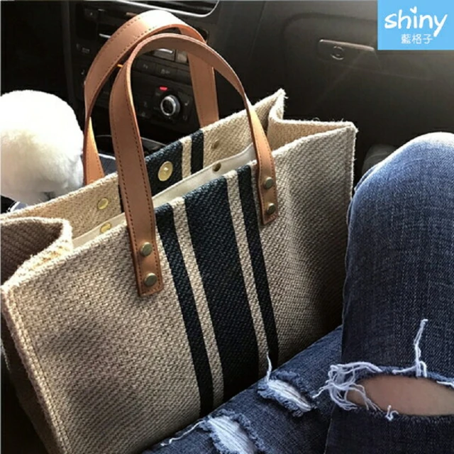 Shiny 藍格子簡約創意條紋帆布手提袋包 P668(女包)