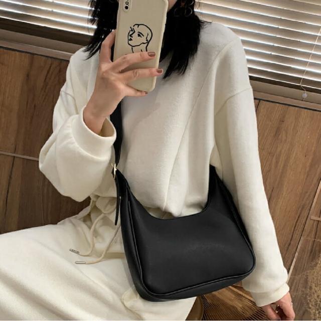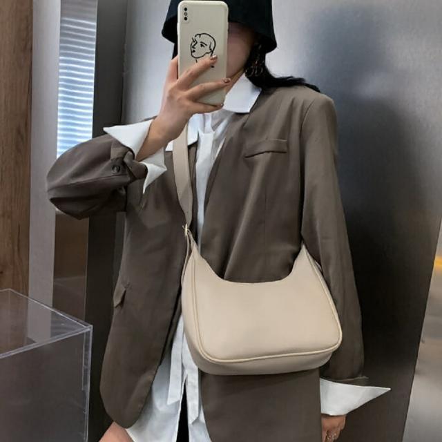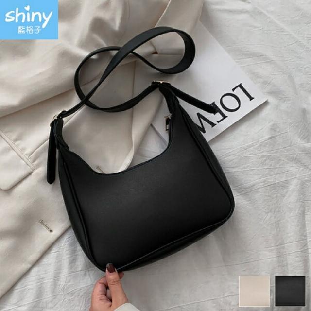 Shiny 藍格子簡約百搭單肩斜挎餃子包 P392(女包)