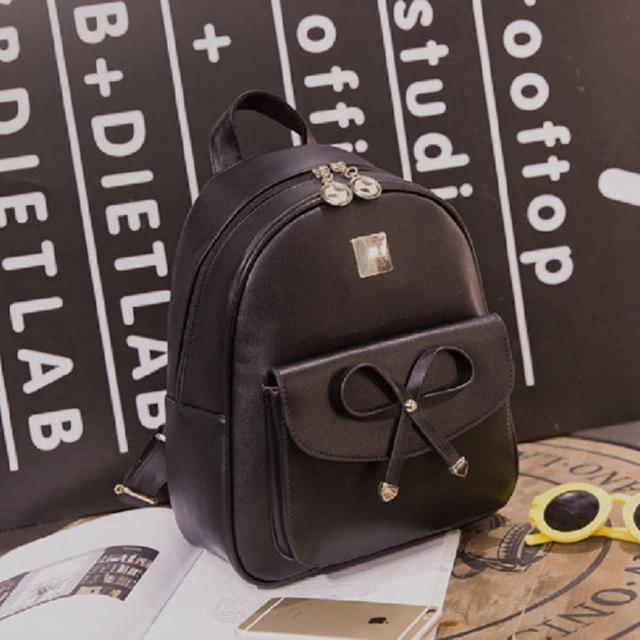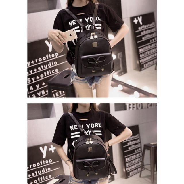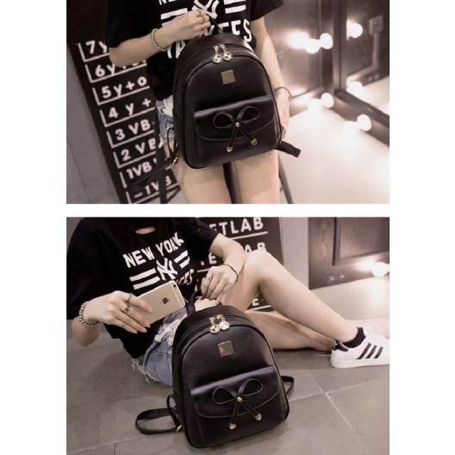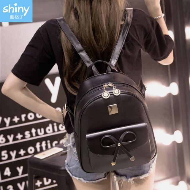 Shiny 藍格子簡約雙拉鍊蝴蝶結雙肩後背包 P148(女包)