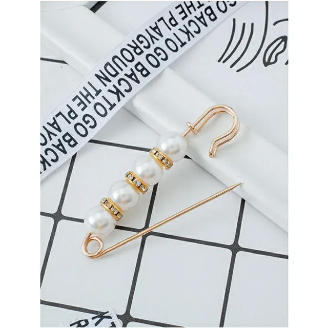 Shiny 藍格子仿珍珠裝飾安全別針收腰扣/防走光衣服扣外套扣 21A67(服飾配件)