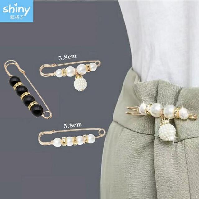 Shiny 藍格子仿珍珠裝飾安全別針收腰扣/防走光衣服扣外套扣 21A67(服飾配件)