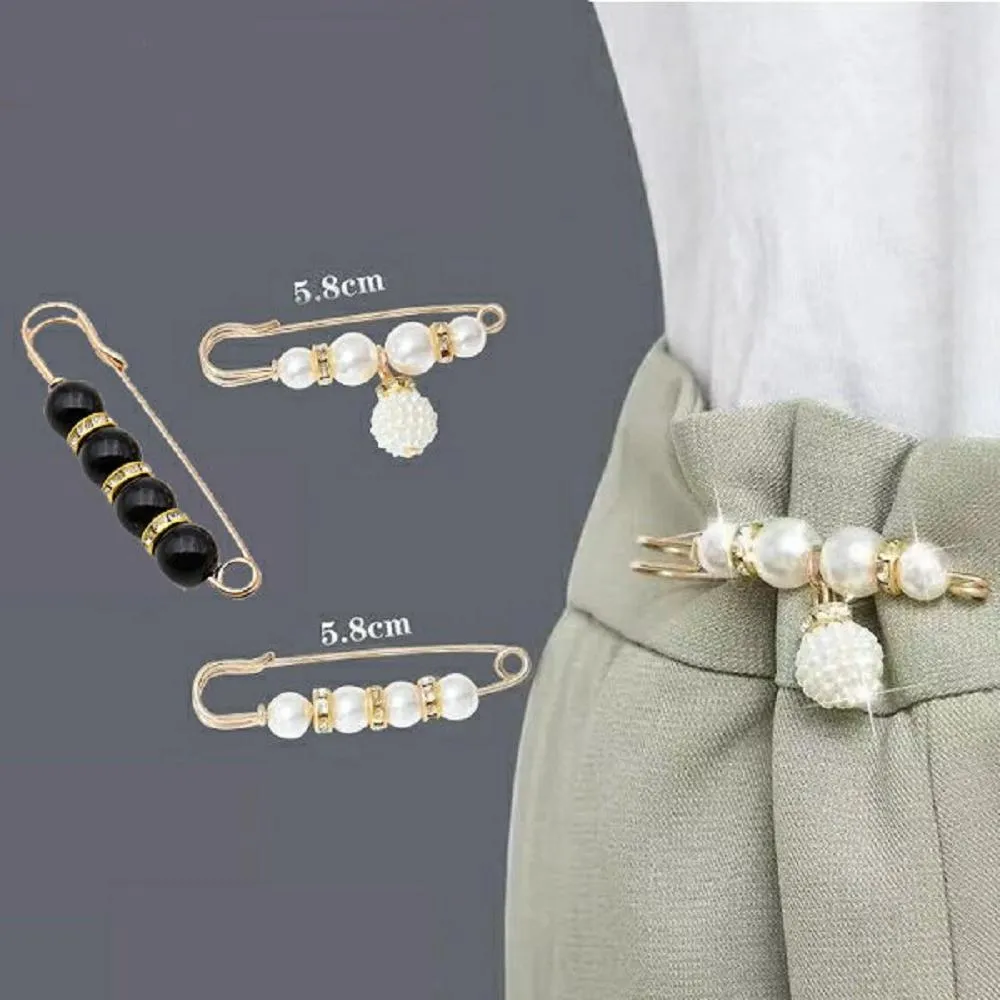 Shiny 藍格子仿珍珠裝飾安全別針收腰扣/防走光衣服扣外套扣 21A67(服飾配件)