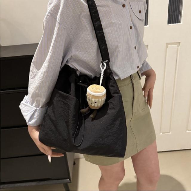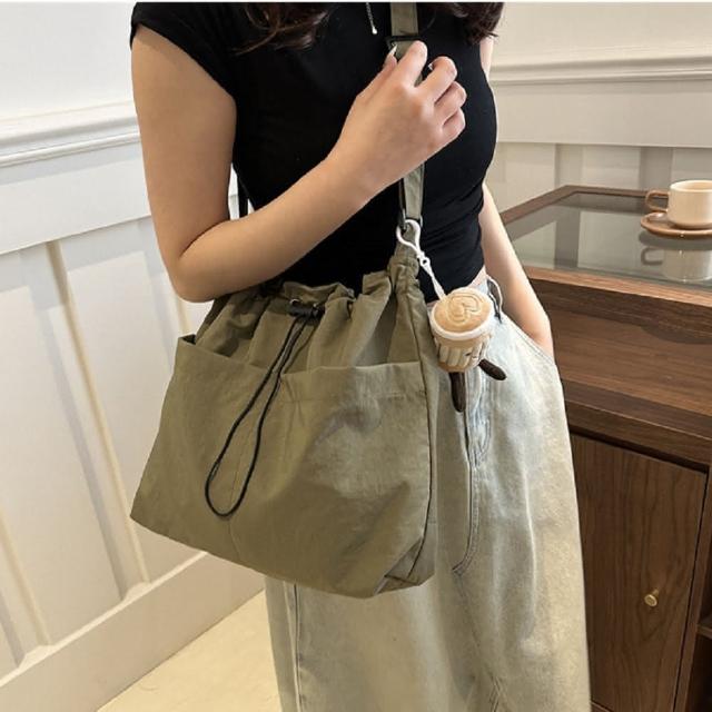 Shiny 藍格子大容量抽繩斜/肩背包托特包 P680 (女包 方包 包包)