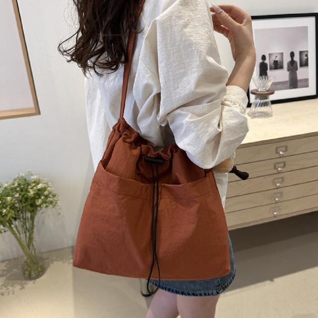 Shiny 藍格子大容量抽繩斜/肩背包托特包 P680 (女包 方包 包包)