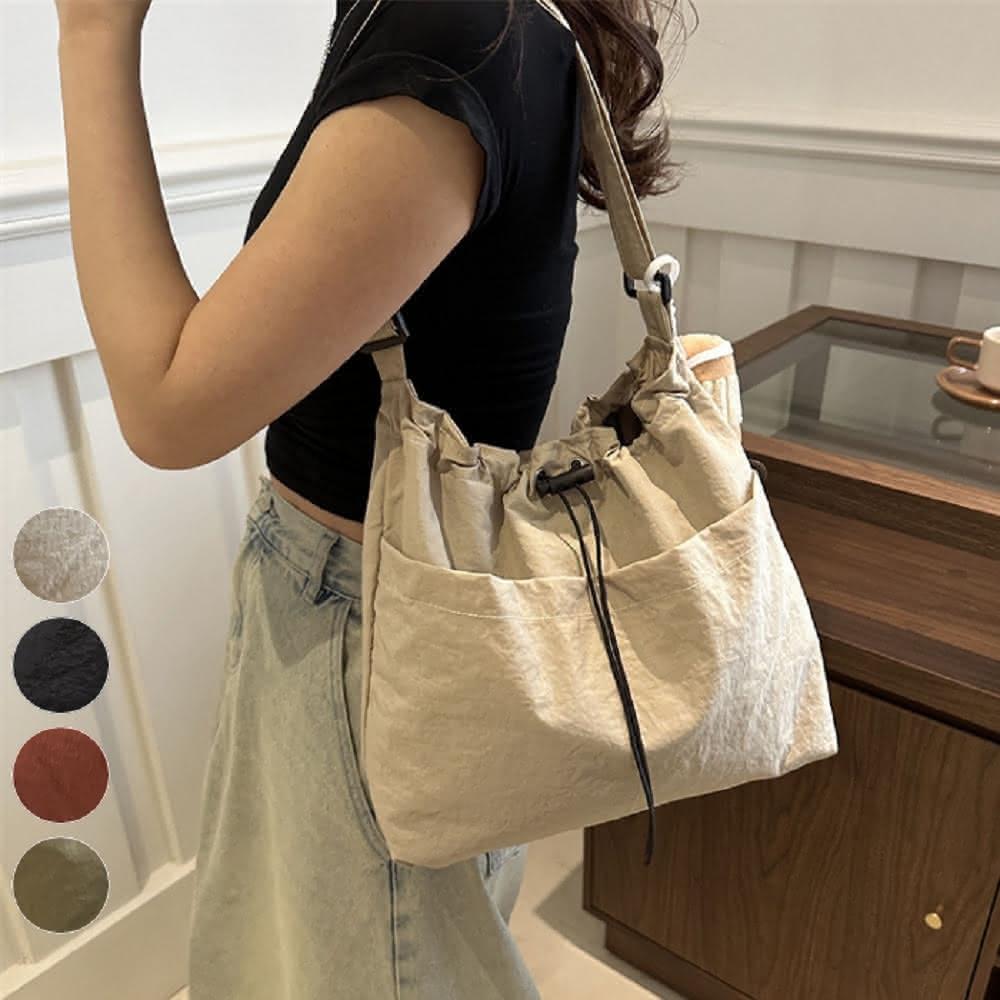 Shiny 藍格子大容量抽繩斜/肩背包托特包 P680 (女包 方包 包包)