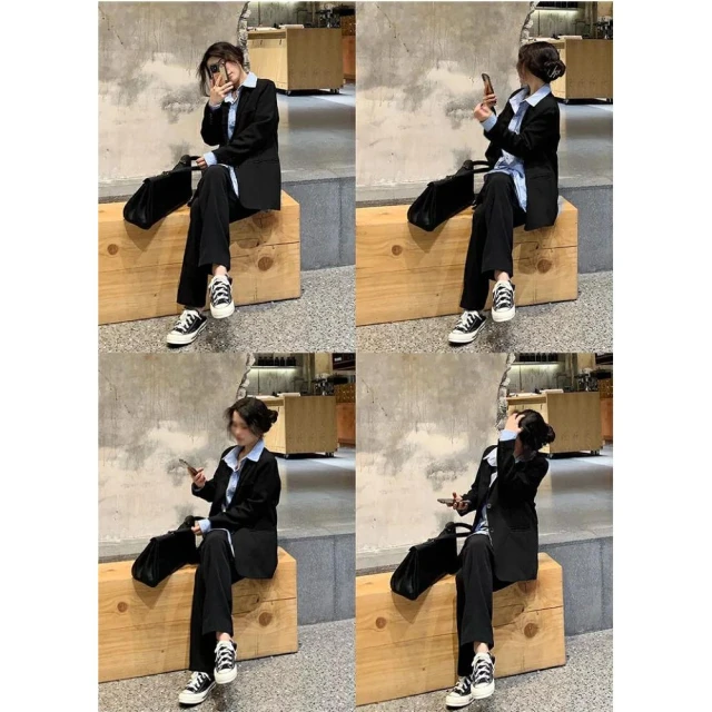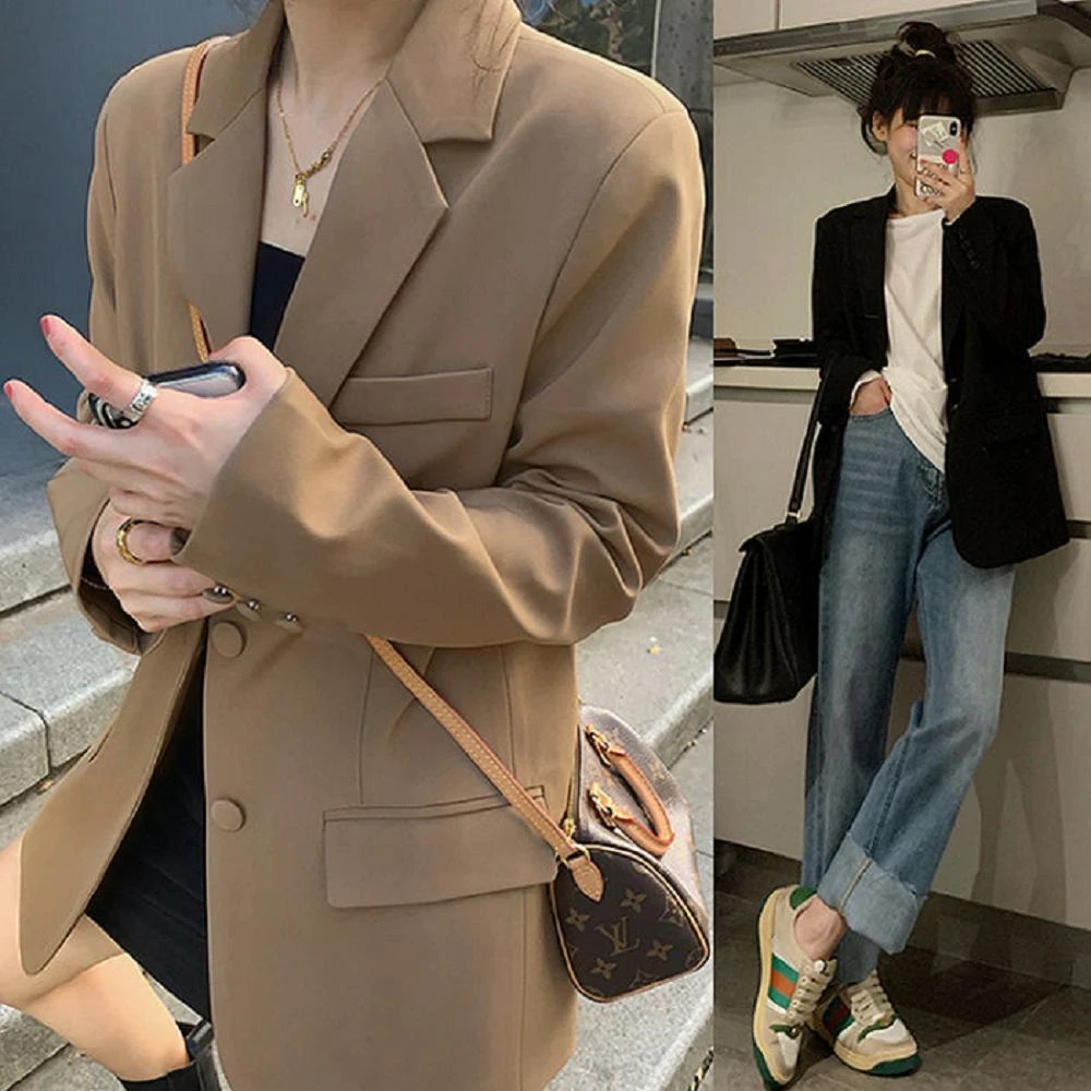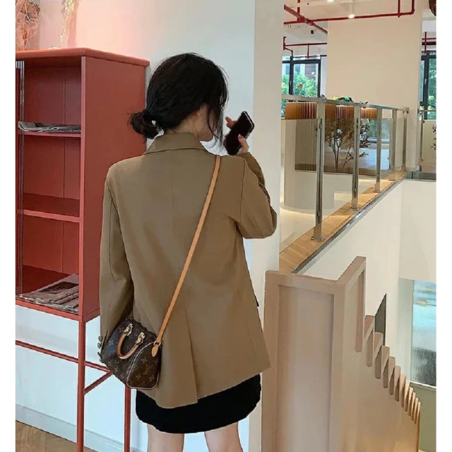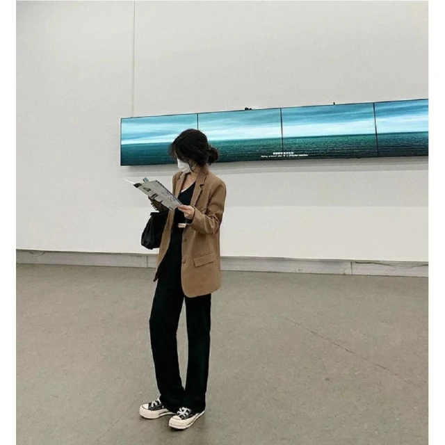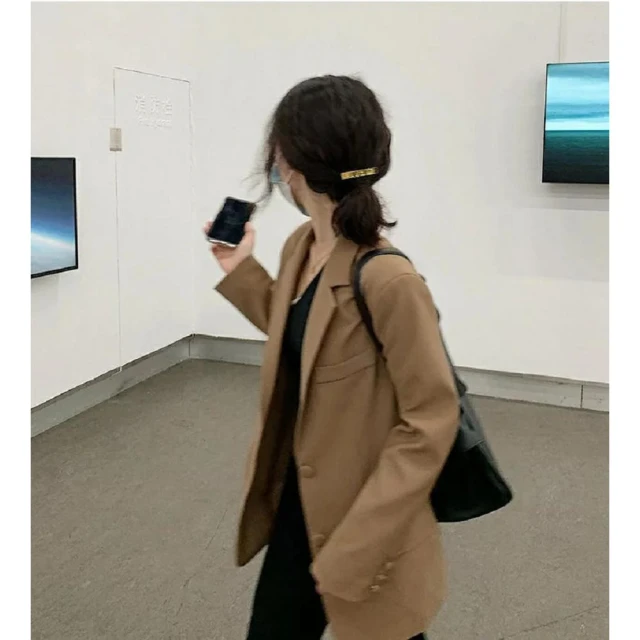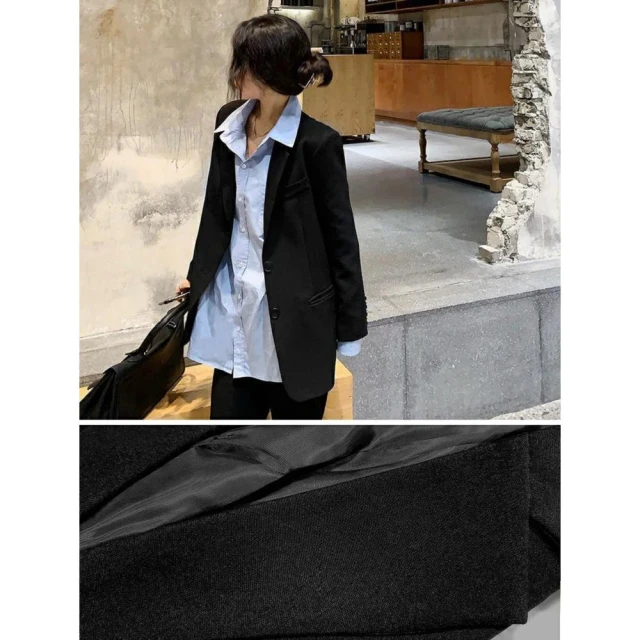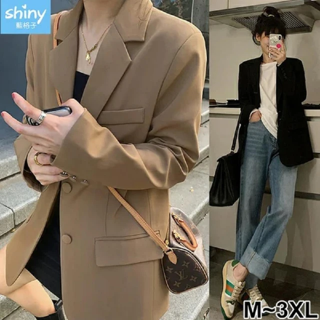 Shiny 藍格子純色翻領兩扣質感休閒西裝外套 V3931(女裝)