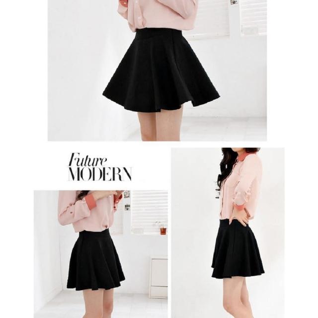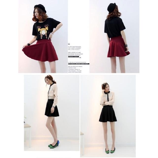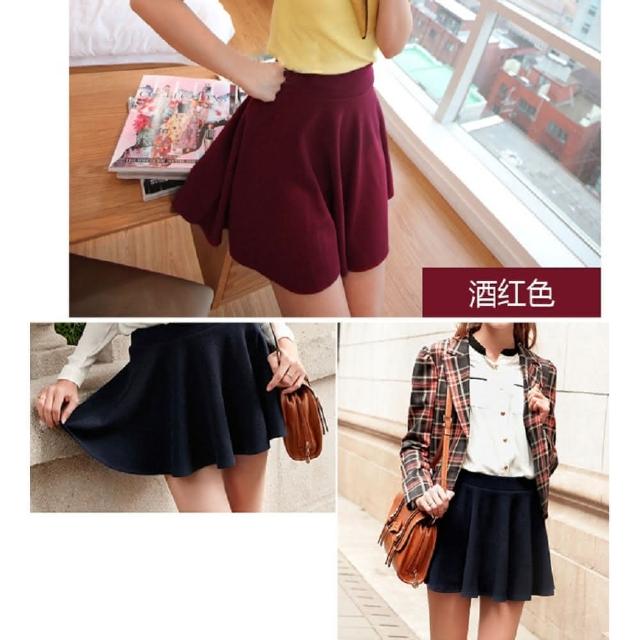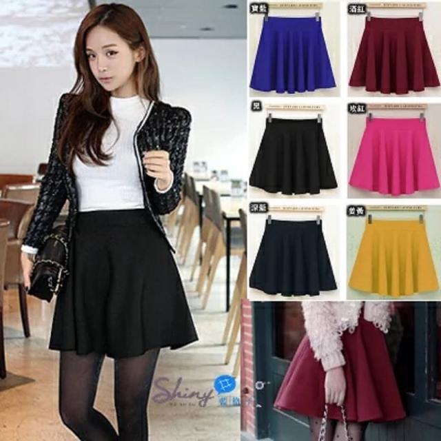 Shiny 藍格子純色顯瘦短裙太陽裙 V2066(女裝 裙子)