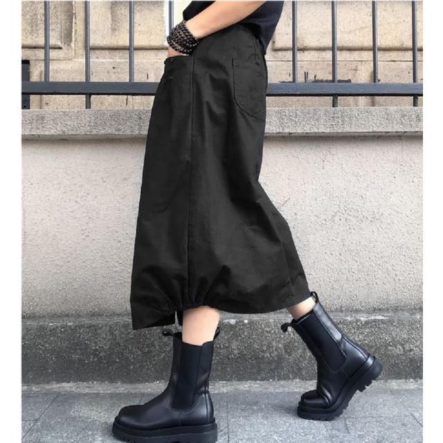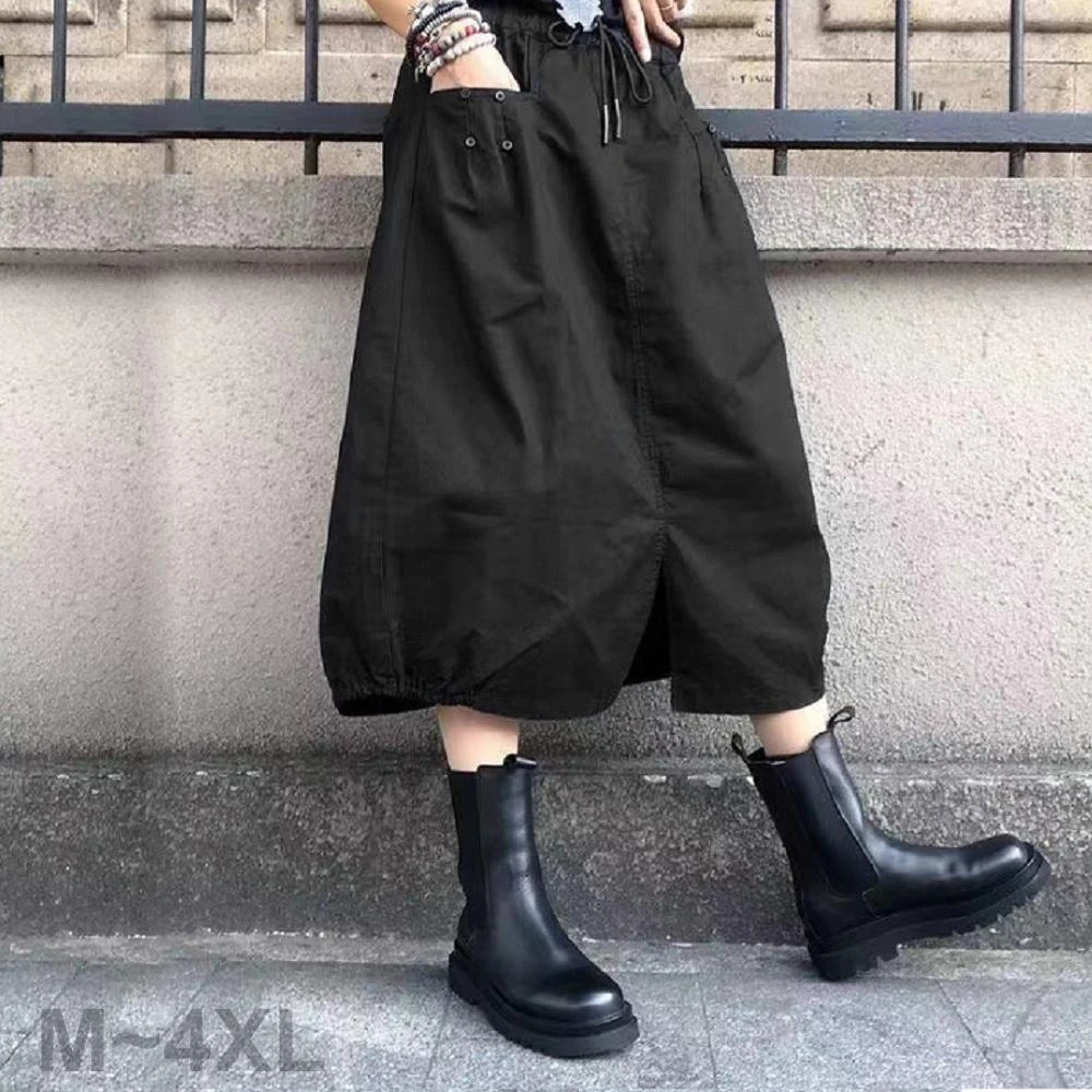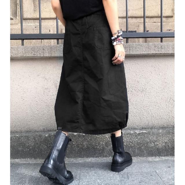 Shiny 藍格子素色前開叉抽繩鬆緊腰A字裙 V5022(女裝 裙子 長裙)