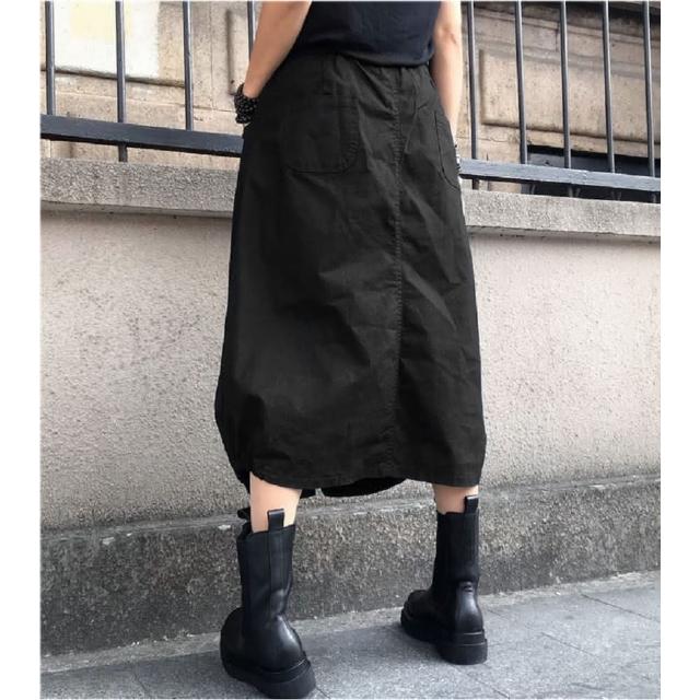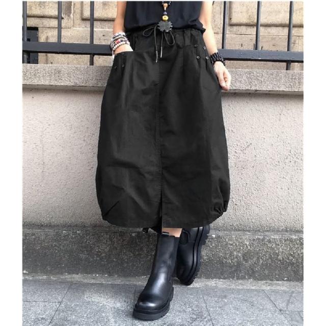 Shiny 藍格子素色前開叉抽繩鬆緊腰A字裙 V5022(女裝 裙子 長裙)