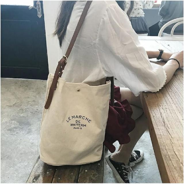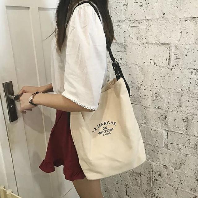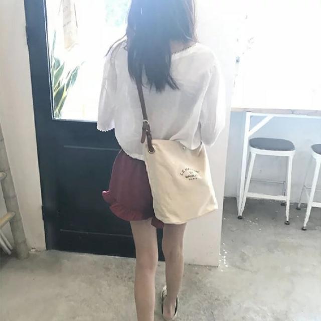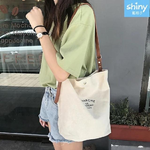 Shiny 藍格子時尚字母斜背單肩子母帆布包 P322 (女包 方包 包包)