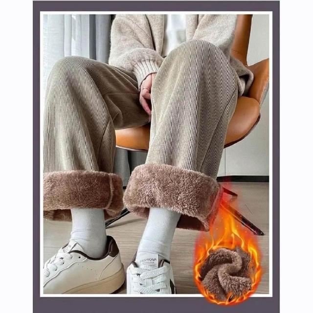 Shiny 藍格子加絨加厚貼標抽繩鬆緊腰直筒褲 V5032(女褲 羊羔毛 刷毛)