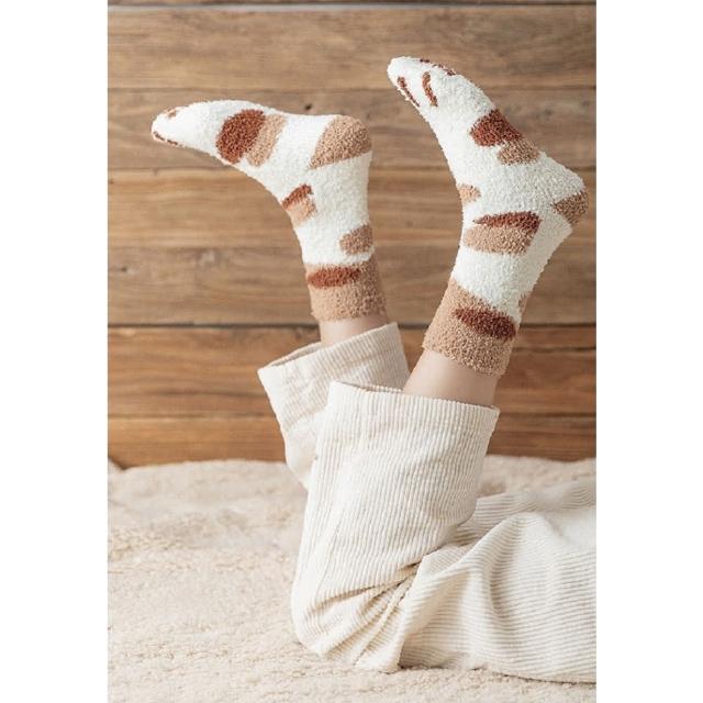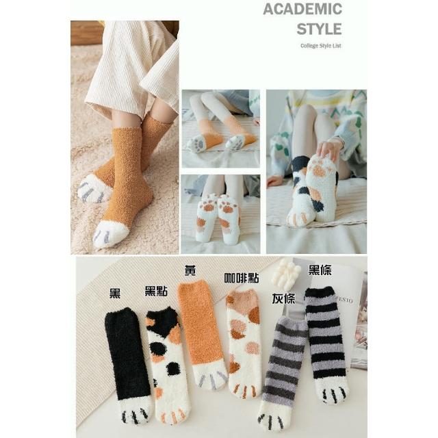 Shiny 藍格子可愛貓爪保暖珊瑚絨居家中筒襪 30A44(女襪 絨毛 襪子)
