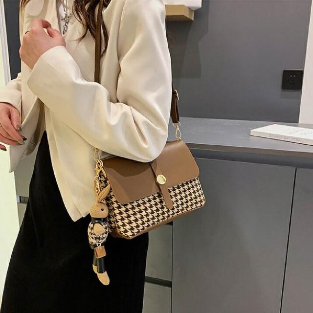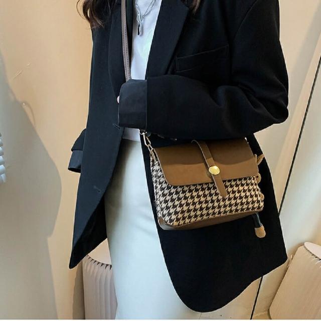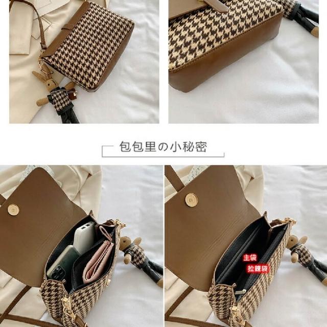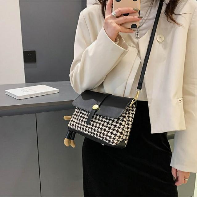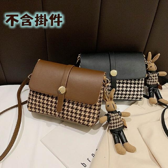 Shiny 藍格子千鳥格時尚單肩斜背小方包 P995(女包)
