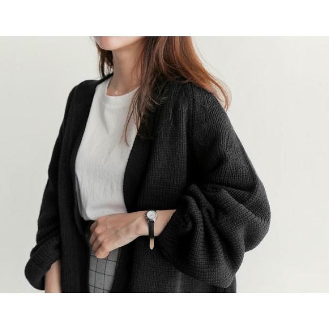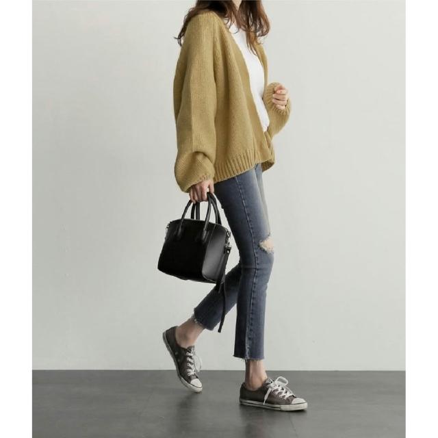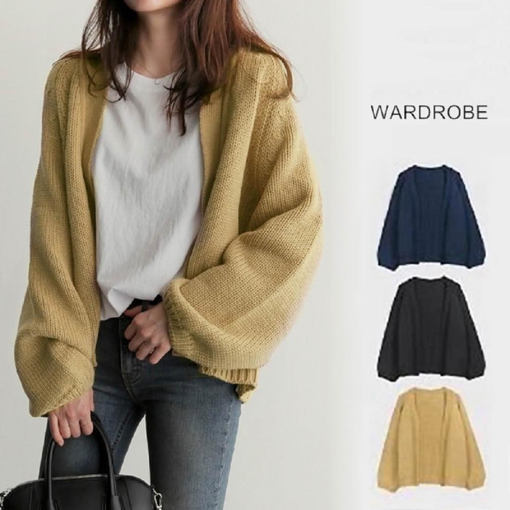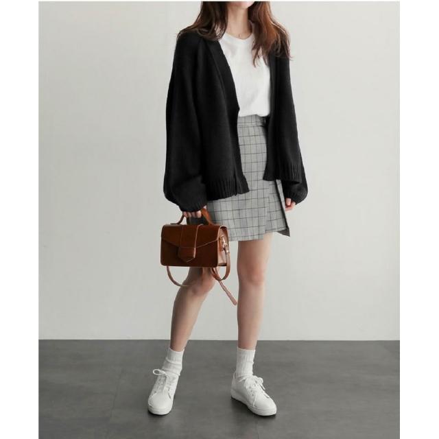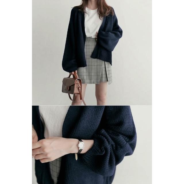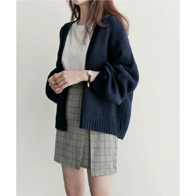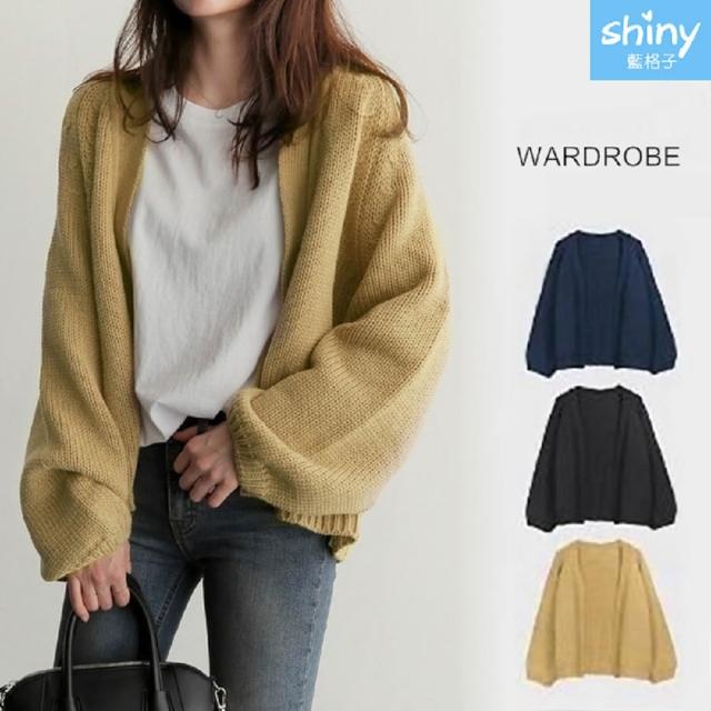 Shiny 藍格子純色寬鬆長袖針織開衫外套 V2638(女裝 毛衣 罩衫)
