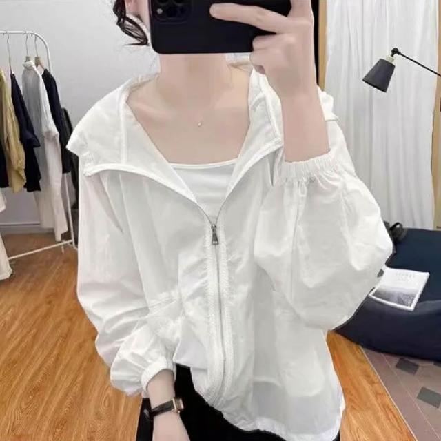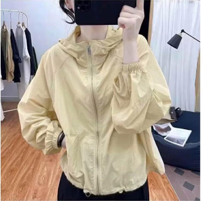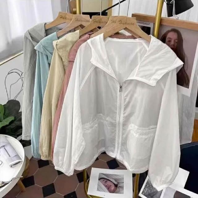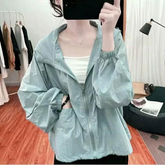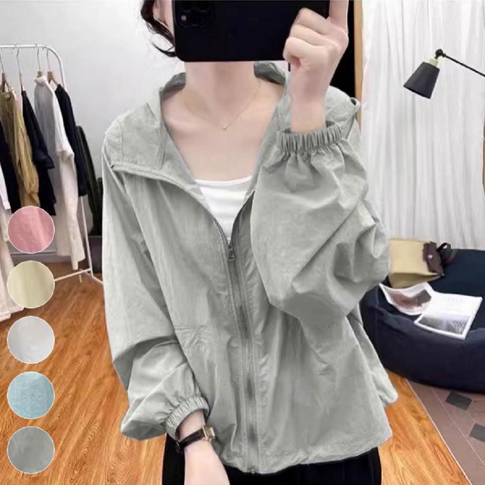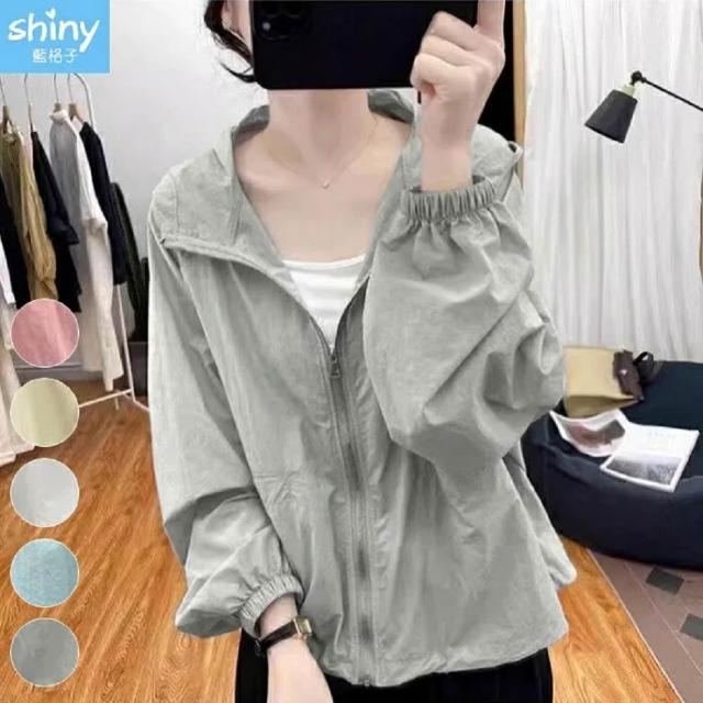 Shiny 藍格子彩色薄款防曬長袖連帽外套 V5062(女裝 風衣)