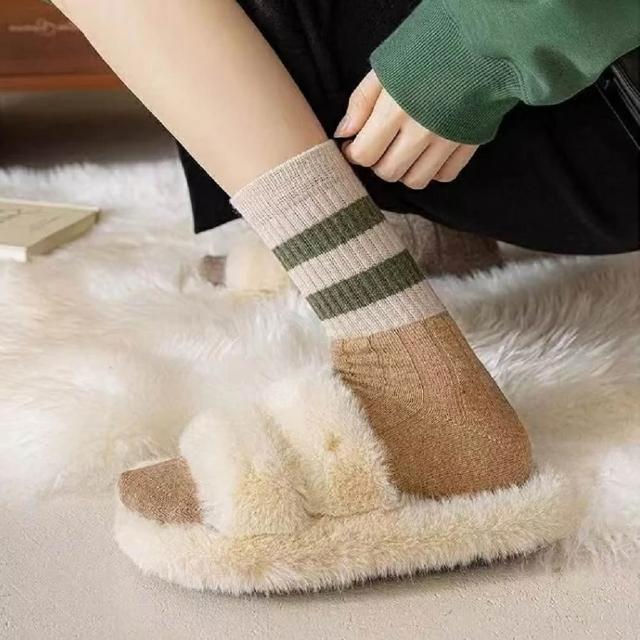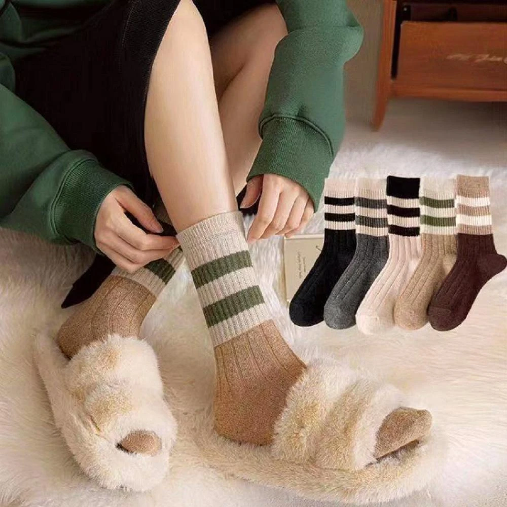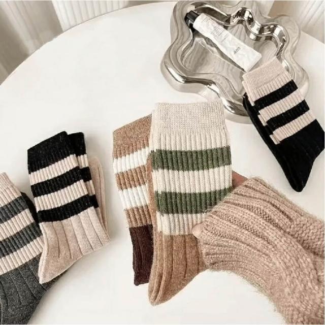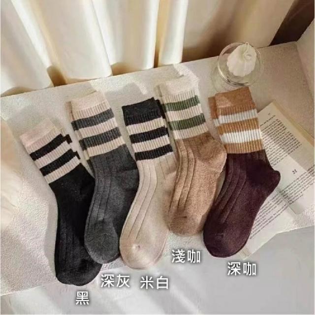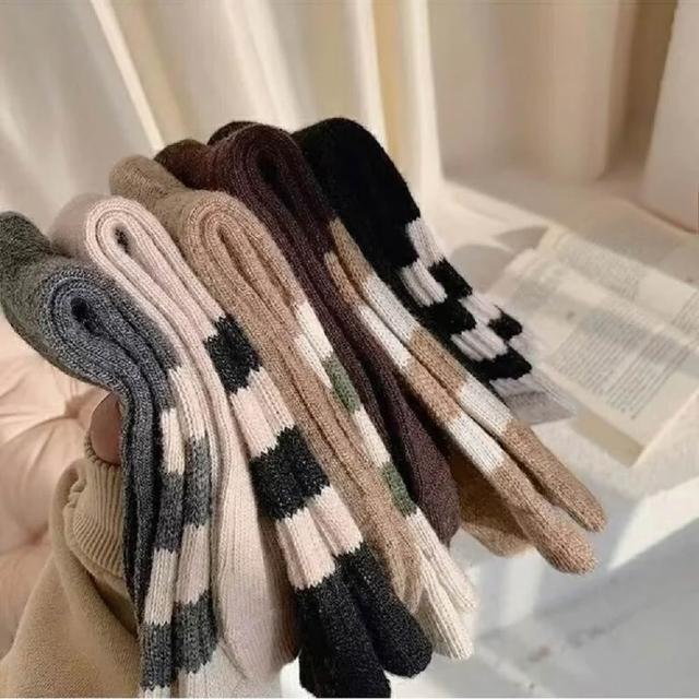 Shiny 藍格子條紋百搭保暖棉襪中筒襪 30A14(女襪 襪子)