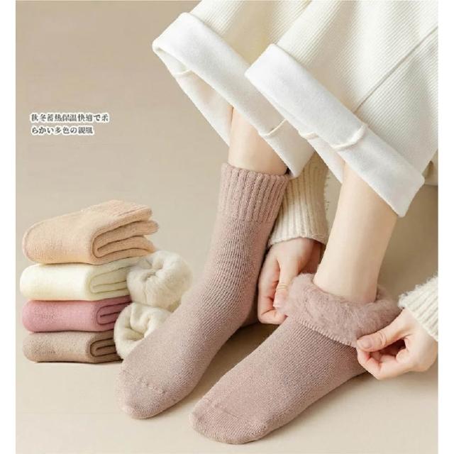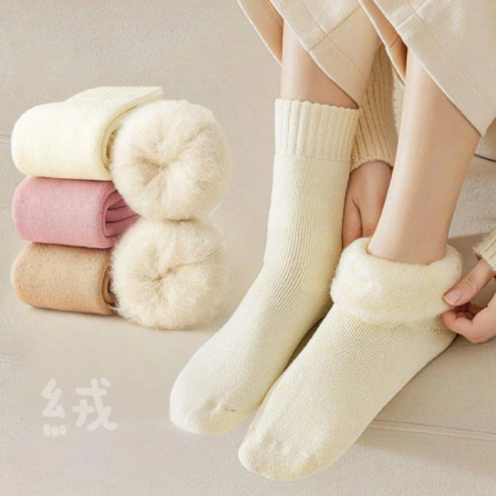 Shiny 藍格子溫暖舒適‧冬季加厚加絨素色保暖毛圈中筒襪 30A15(女襪 襪子)